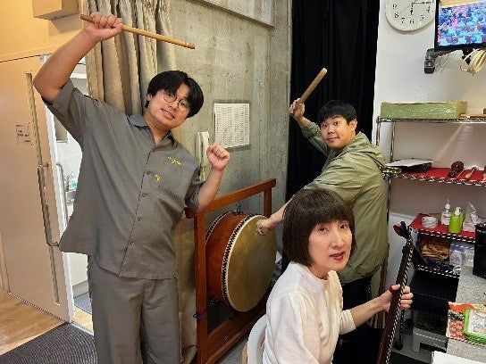 開場前の舞台袖では、内海英華さんが三味線のチューニングをしたり、史隆さんの出囃子「六甲おろし」を練習したり、後輩の皆さんと談笑したり、初日・二日目とはまた違った明るい雰囲気。