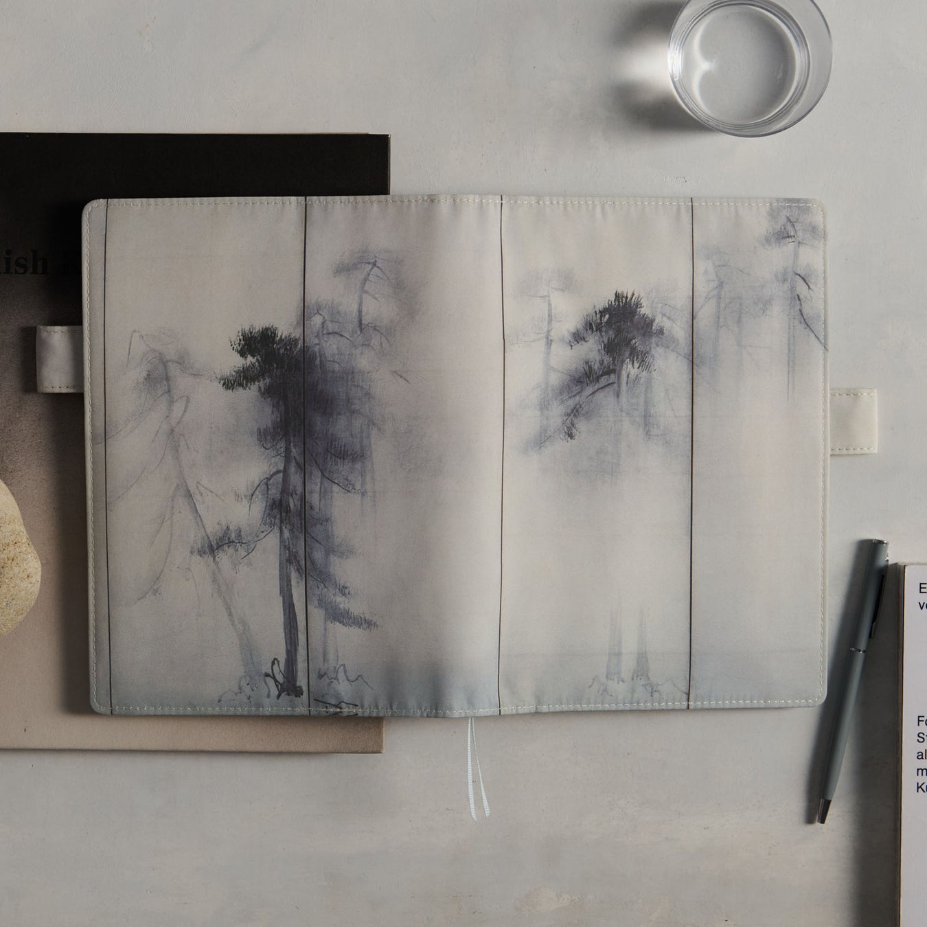 安土桃山時代の画家・長谷川等伯によっておよそ420年前に描かれた「松林図屏風(しょうりんずびょうぶ)」。近世水墨画の最高傑作ともいわれ、現在は国宝として東京国立博物館に所蔵されています。謎めく魅力で人々の心を引きつけてきたこの人気の国宝が、手帳カバーと週間手帳weeksになりました。