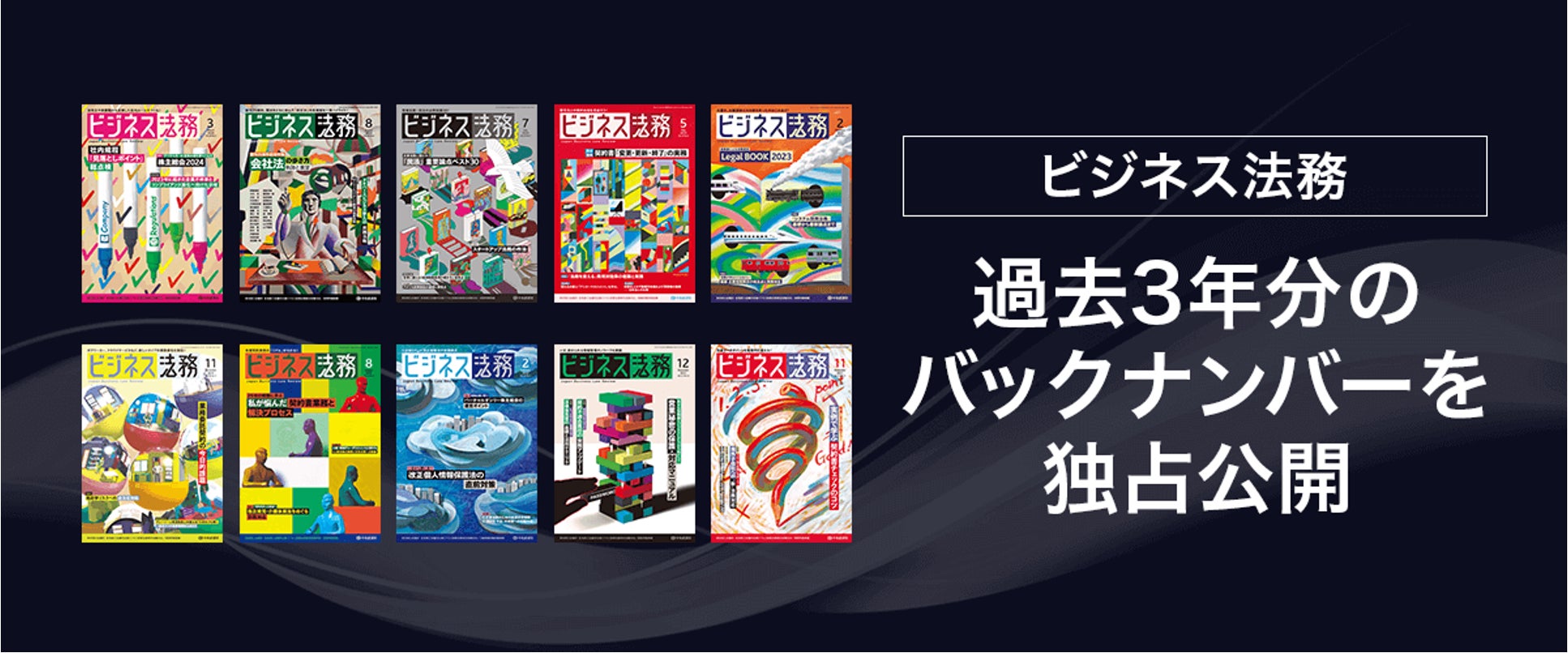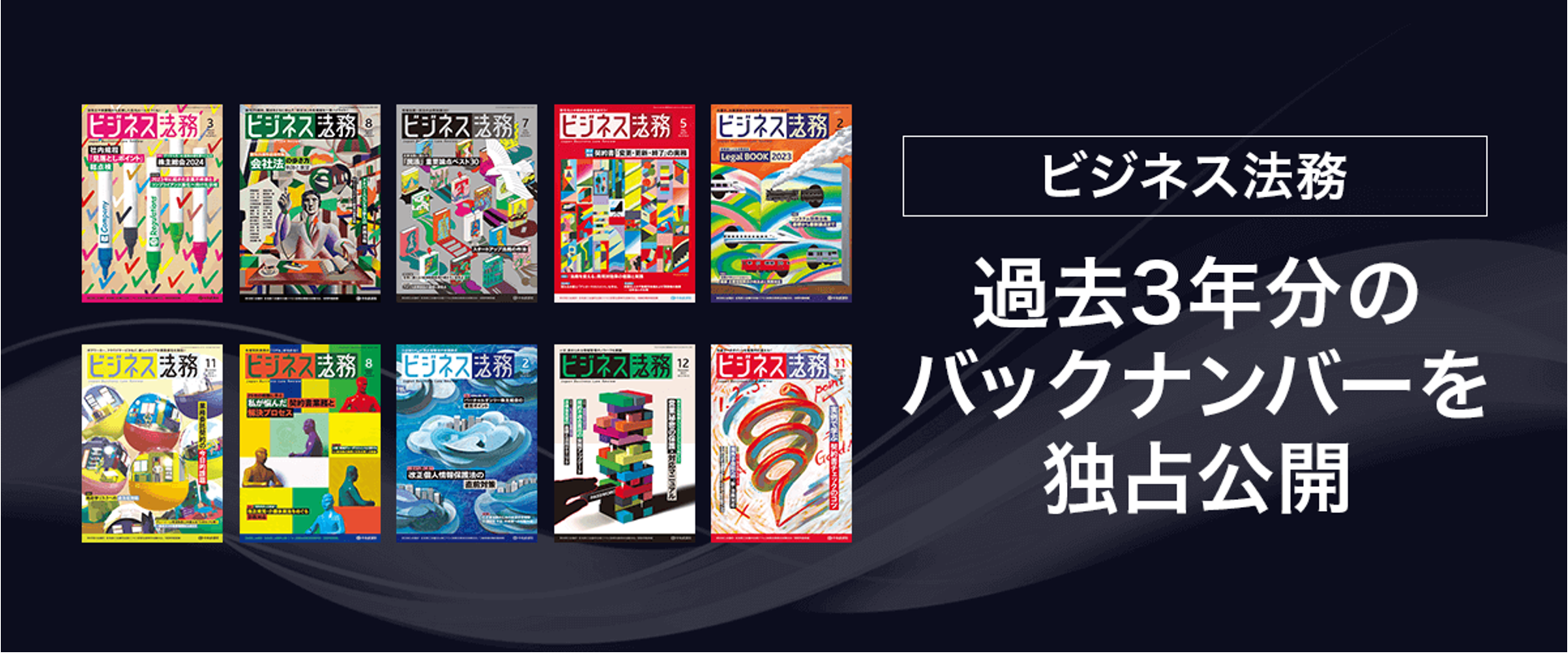 今回当社では、2021年6月号(リーガルリスクマネジメント特集)から3年分のバックナンバーを当社リーガルリサーチサービスにて独占公開します。また、今後掲載される「ビジネス法務」に関しては、閲覧期限を設けずいつでも閲覧することが可能になります。