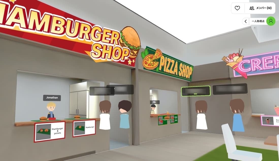 授業では、児童たちが3~4人のグループに分かれ、それぞれ自分のアバターを操作してメタバース空間を移動。空港やお店で待つALTと英会話を楽しみました。