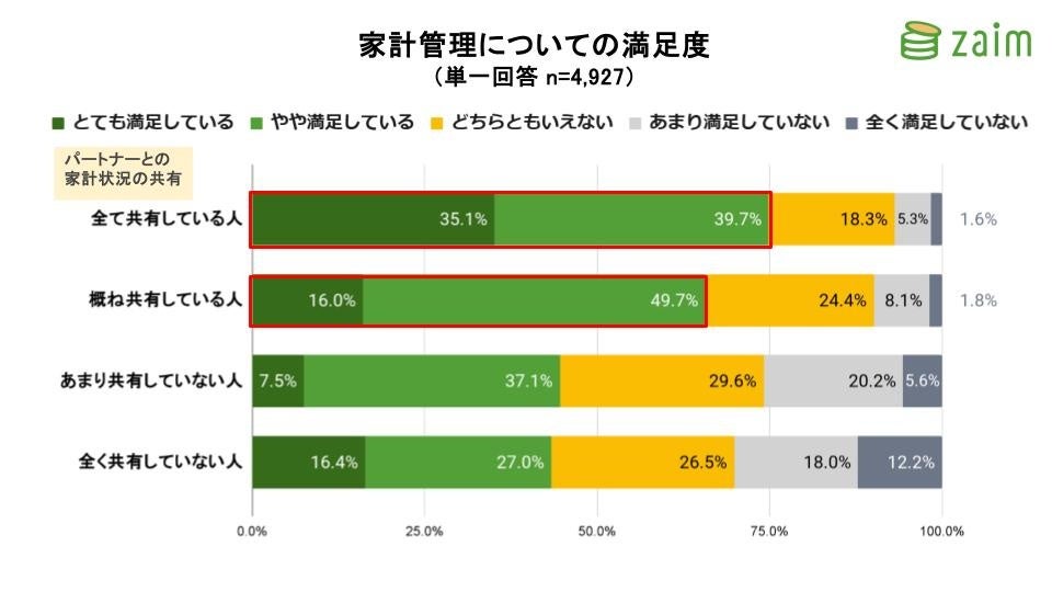 家計状況をパートナーと共有している人ほど「家計管理の満足度」が高い
