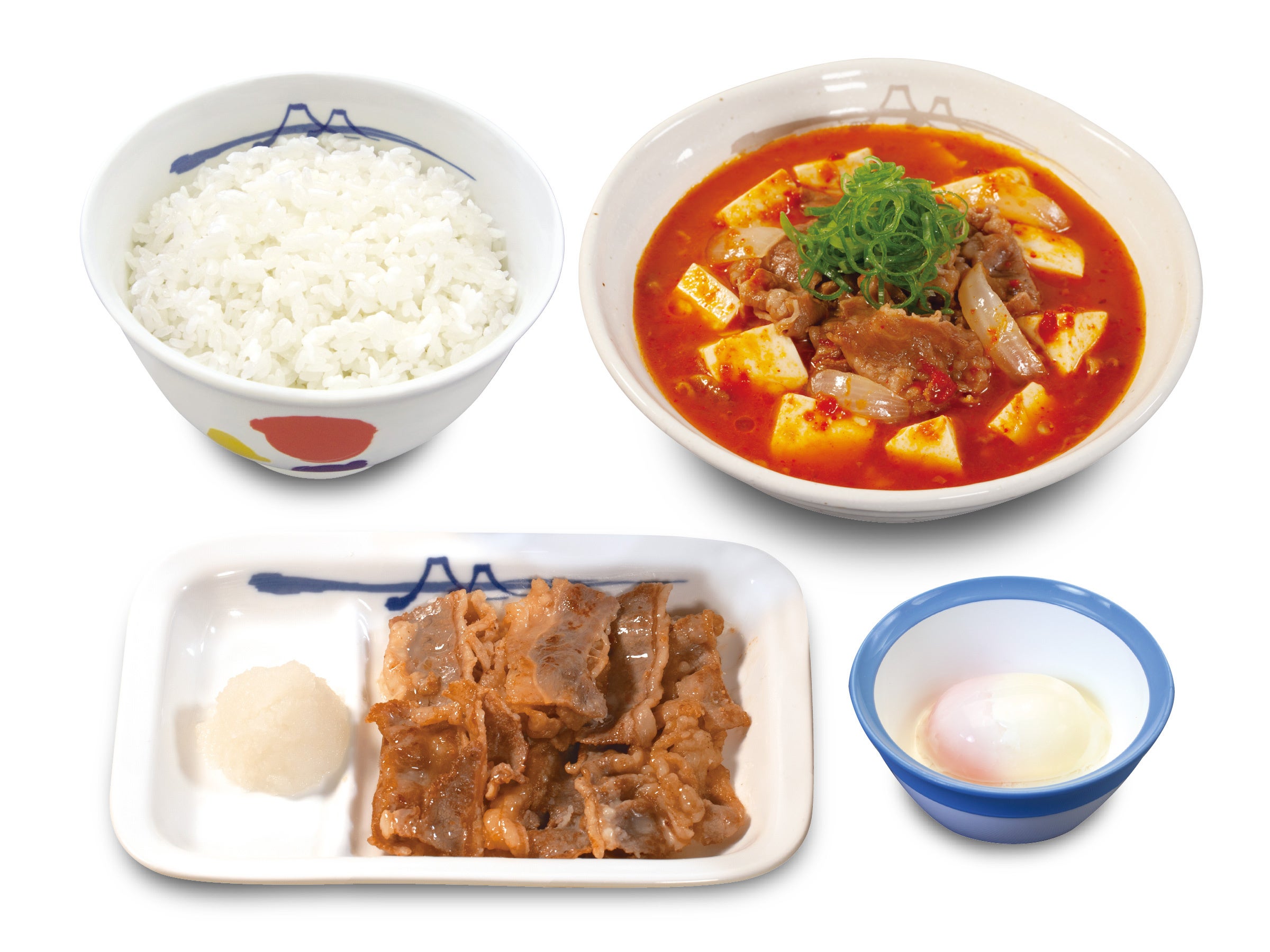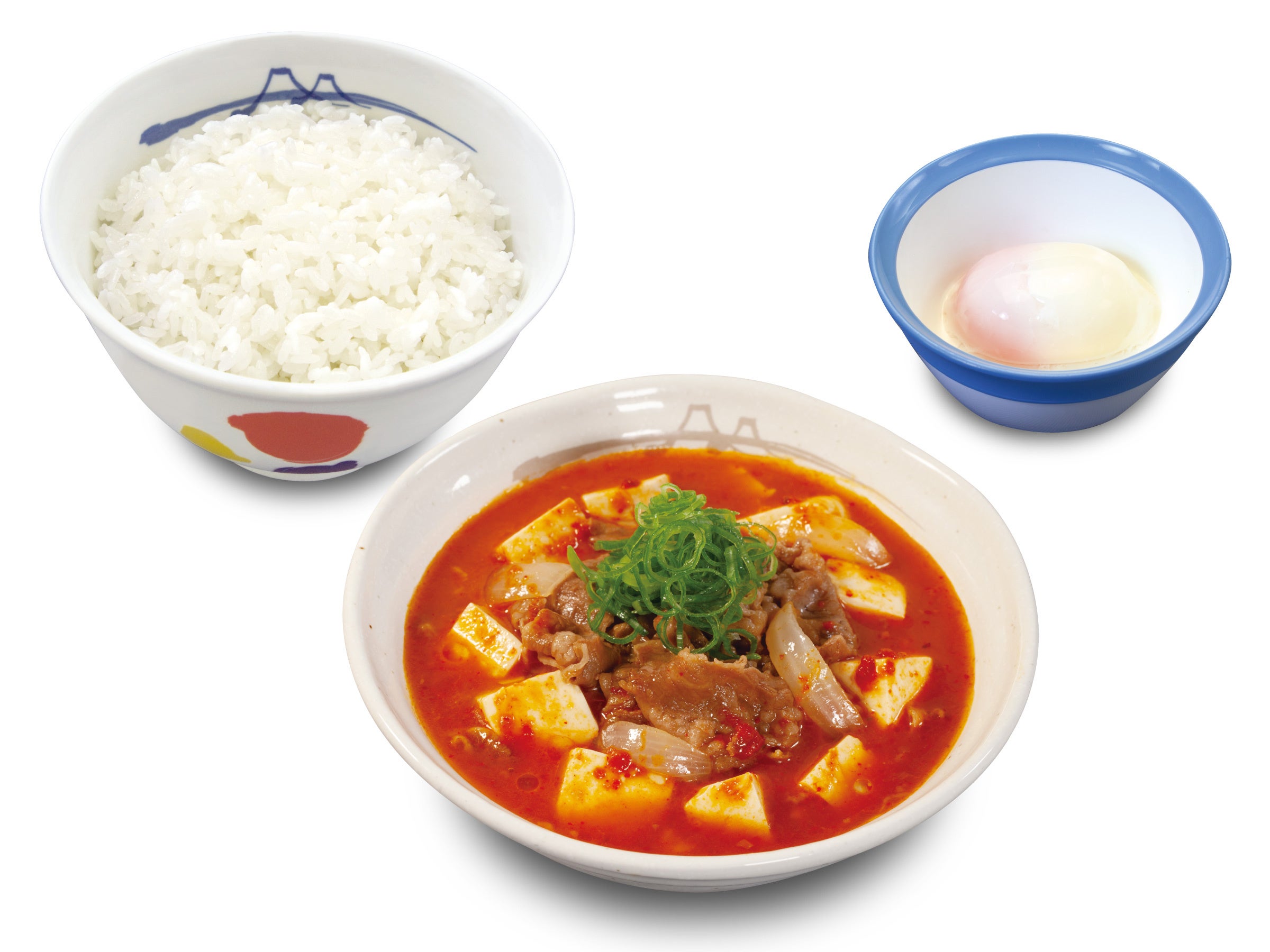| 商品名 海鮮豆腐キムチチゲセット 890円 牛豆腐キムチチゲセット 590円 海鮮豆腐キムチチゲカルビ焼肉セット 1,190円 牛豆腐キムチチゲカルビ焼肉セット 890円 ※単品でのご購入、テイクアウトが可能です。 ※すべて半熟玉子か生玉子が選べます。 ※各豆腐キムチチゲセットを店内でお買い求めのお客様でみそ汁をご希望の方は、 従業員にお申し付けください。 ※全て税込み価格です。 ※「海鮮豆腐キムチチゲ」にも牛肉は入っております。 発売日 2022年12月13日(火)午前10時 ~ 対象店舗 一部店舗を除く全国の松屋 |