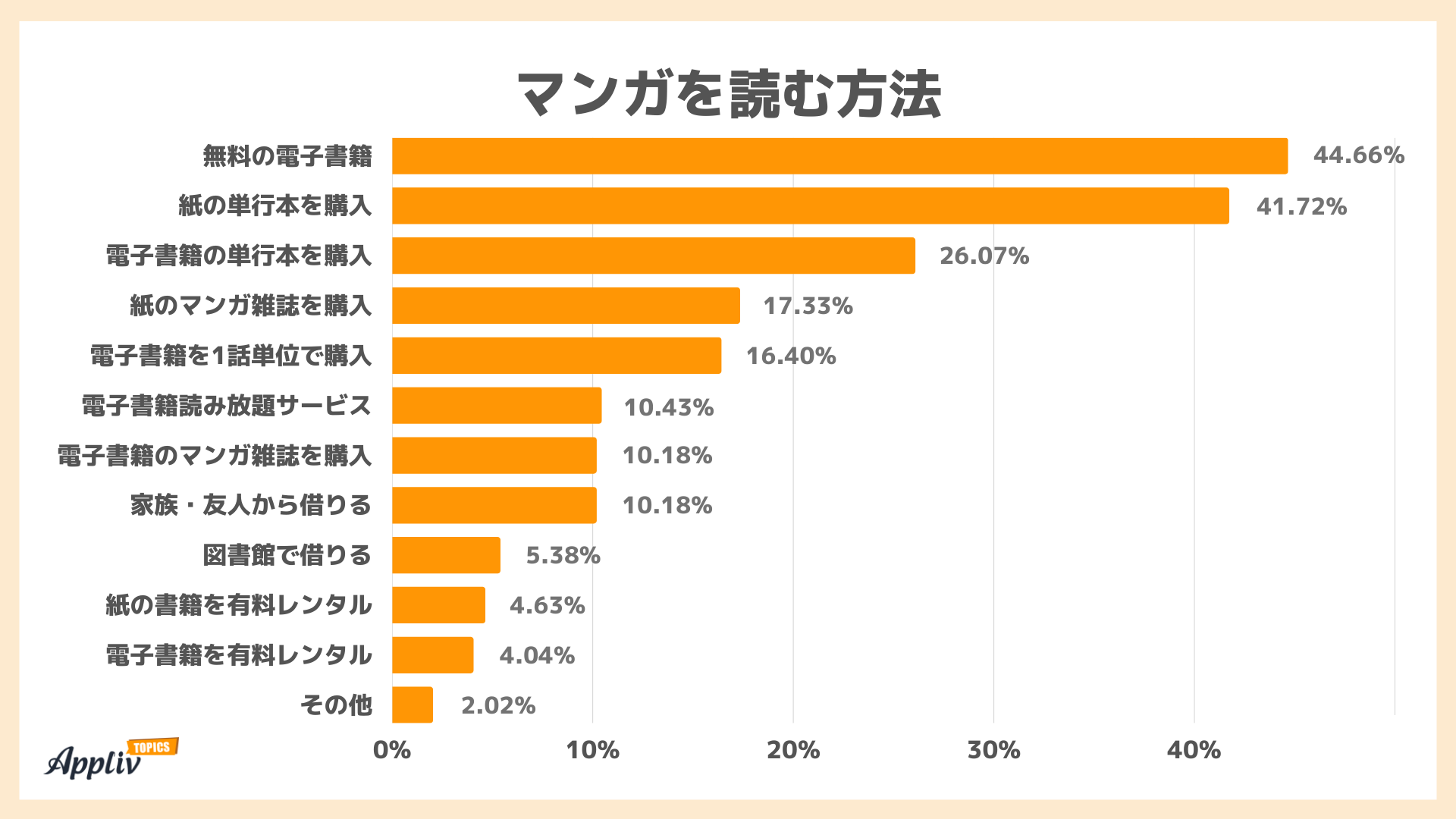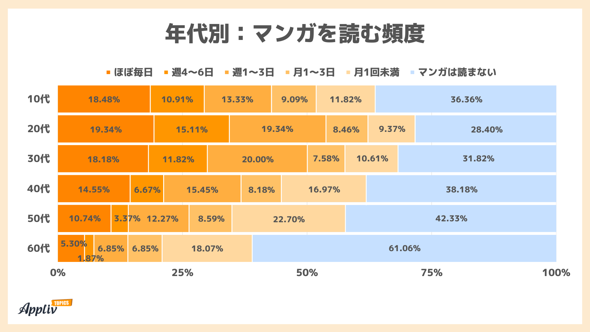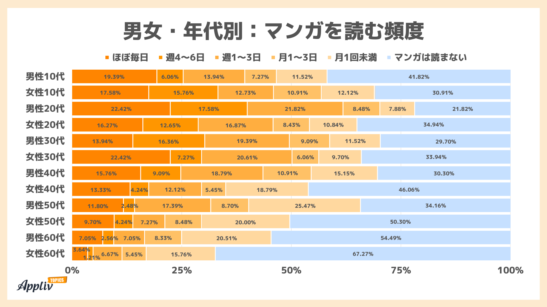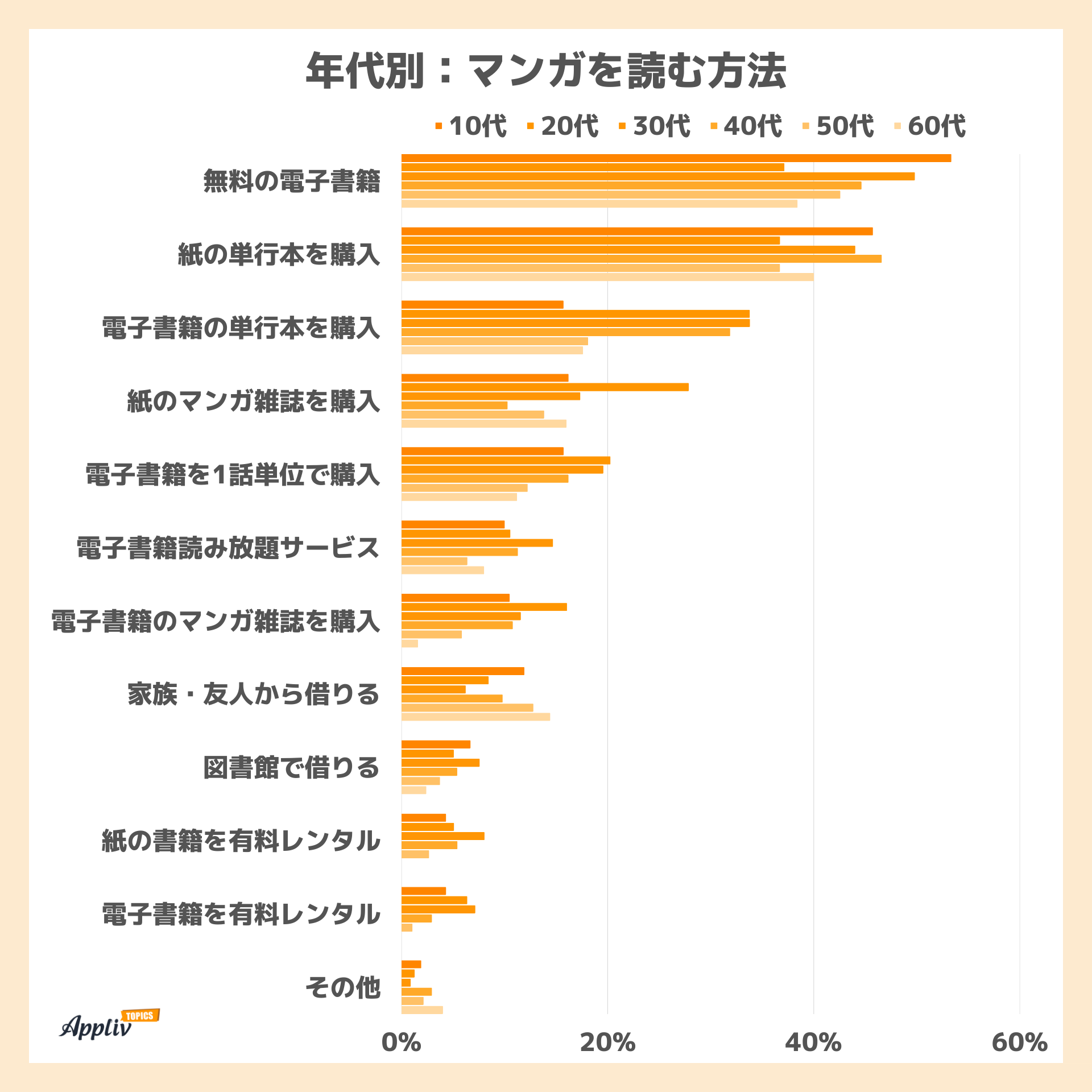 マンガを最もよく読むのは20代 男性は紙の単行本・女性は無料の電子書籍の利用が多い(Appliv TOPICS調べ)