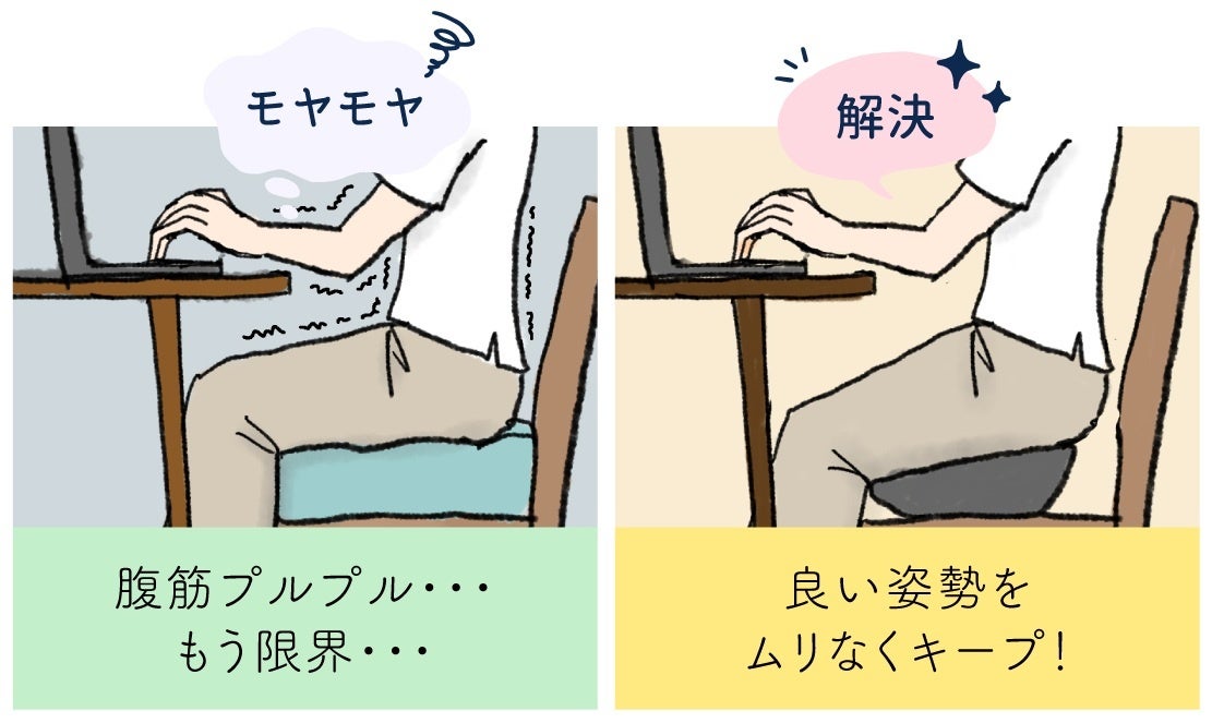 姿勢もストレッチもこれひとつ。W機能を備えた新発想クッションをCAMPFIREにて発売!