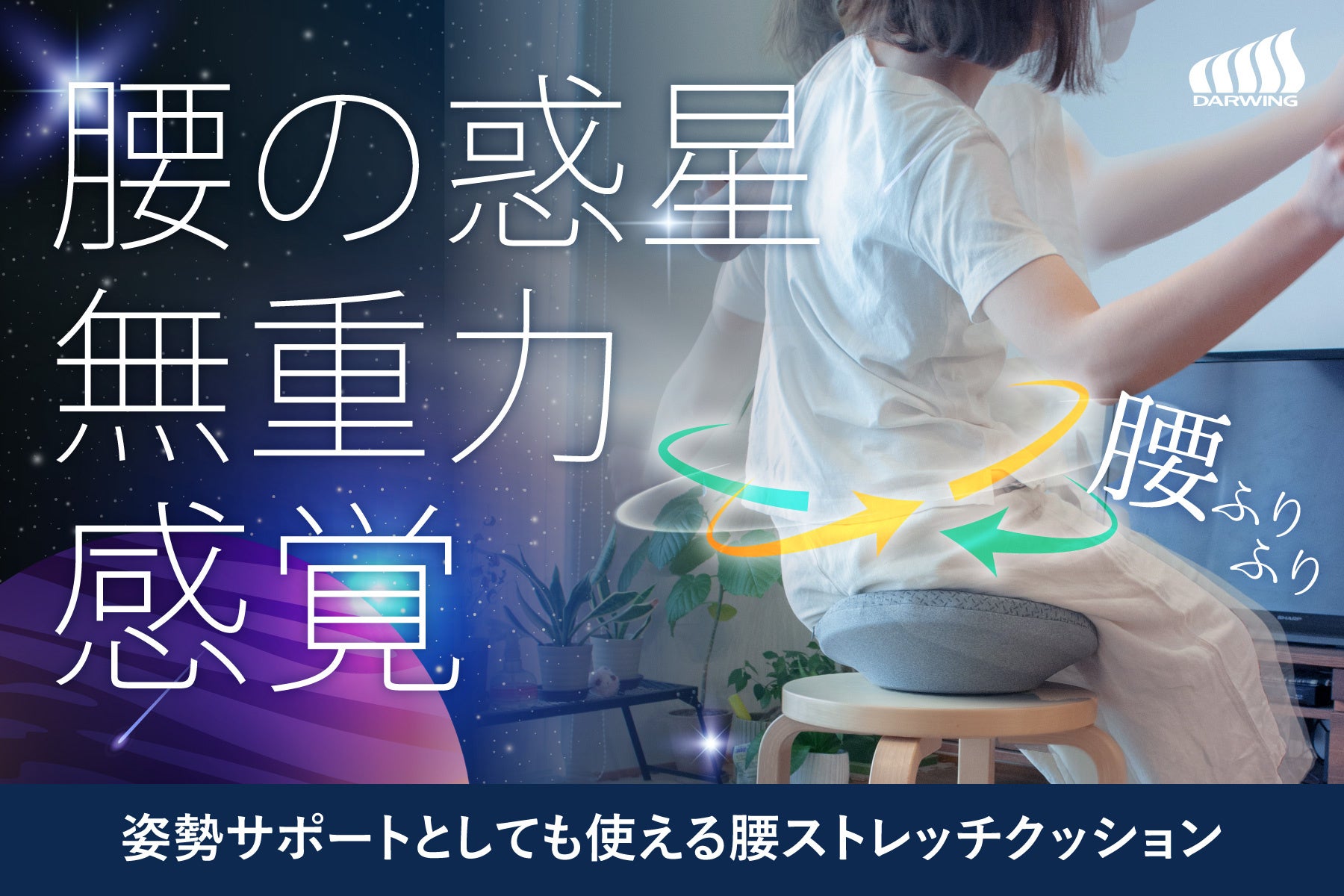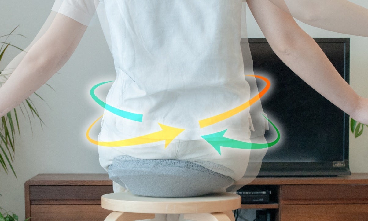 姿勢や腹筋を意識する一般的な姿勢サポートクッション(傾斜が付いたものや成形されたもの)を1日中使うのは意外と難しく、長続きしにくいという課題がありました。そこで開発したアイテムが『すわルンバHOME』です。『すわルンバHOME』は、姿勢サポート機能と腰のストレッチ機能を融合させたローリングクッションです。頭の位置を動かさなくても座ったままの状態で腰のストレッチができるため、仕事中やテレビを見ているときなど「ながら運動」の習慣作りが期待できます。