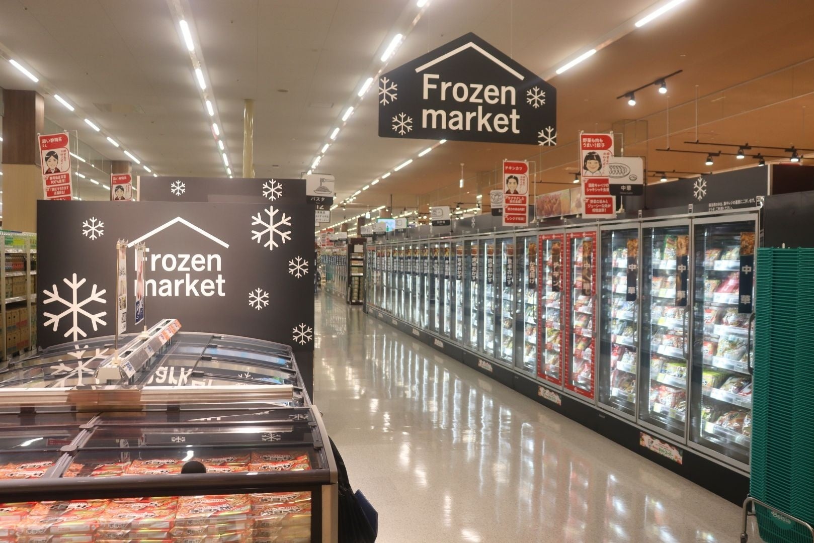 一般食品コーナーでは、大人も子どもも楽しめる「おかしのくに」コーナーや、地酒からワイン・チューハイまで幅広く揃えた「家呑み酒場」コーナーなど、ワクワクする仕掛けとともに展開。冷凍食品コーナーでは、ストックしておくと便利なワンプレートや米飯、麺類などの個食商品や、価格が安定してお求めやすい冷凍野菜を強化いたします。