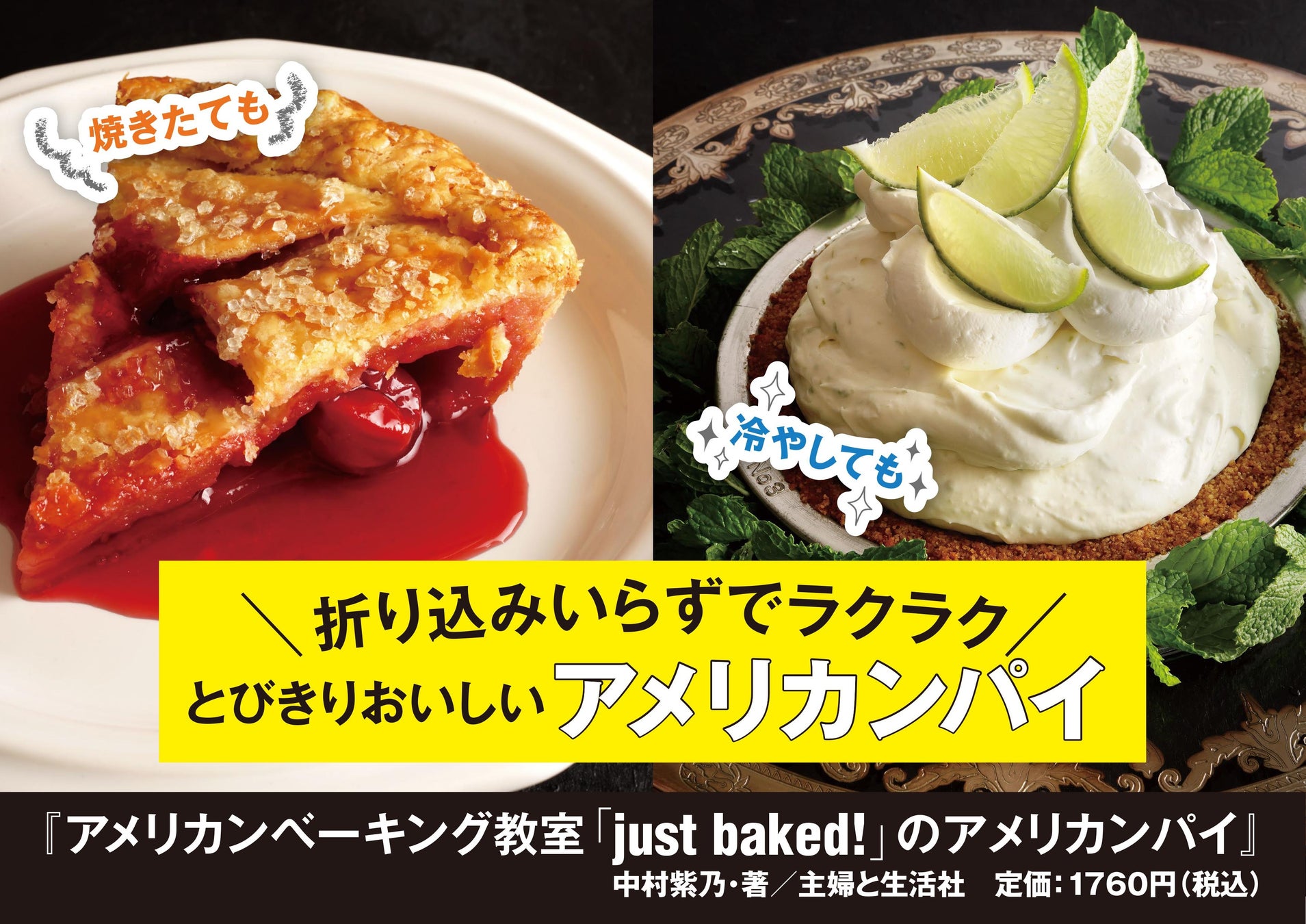 おおらかさと抜群なおいしさで注目! 思い立ったらすぐ作れるアメリカンなパイの本『アメリカンべーキング教室「just baked!」のアメリカンパイ 折り込みいらずで、気軽に本場の味』10/13発売