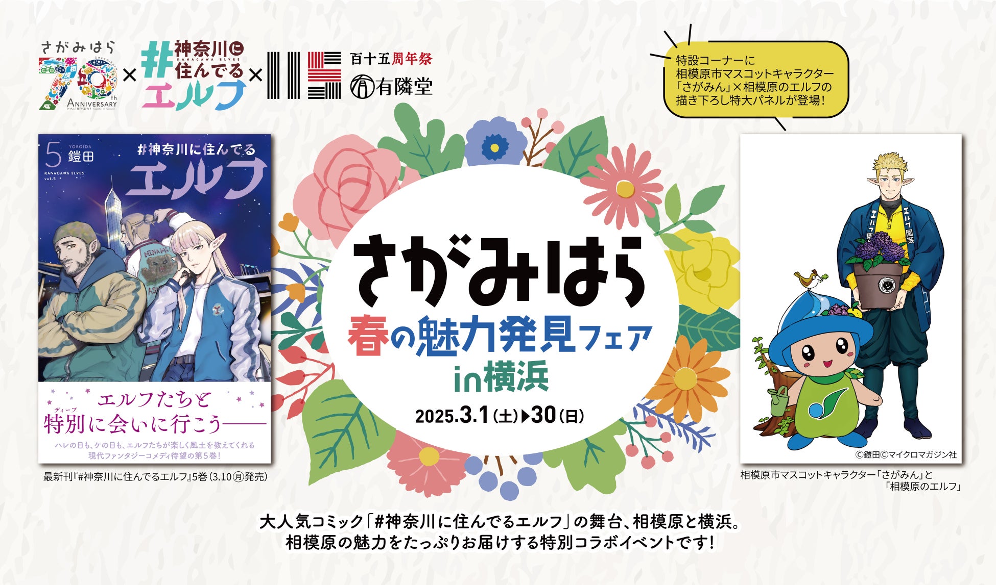 相模原市と大人気コミック「#神奈川に住んでるエルフ」と 有隣堂がコラボレーション。桜木町みなとみらいエリアから相模原の魅力をたっぷりお届けする春の特別イベントです。