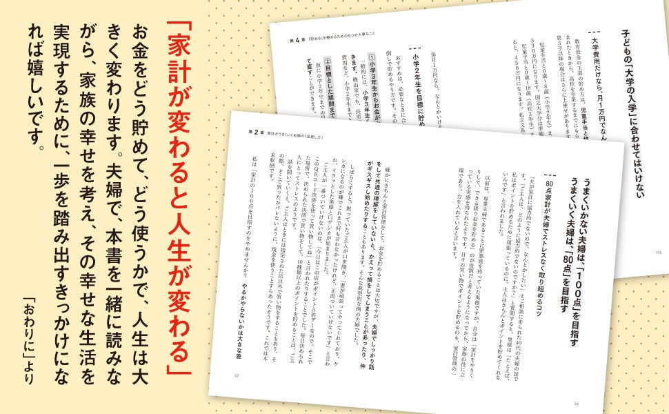 仕事優先だった会社員時代の苦い経験から、本来「家族と幸せに暮らすために仕事をしている」ことに気づき、お金の専門家となった著者は、お金のことで悩んでいる夫婦に「豊かに幸せに生活できる」家計のアドバイスが必要だと痛感しました。