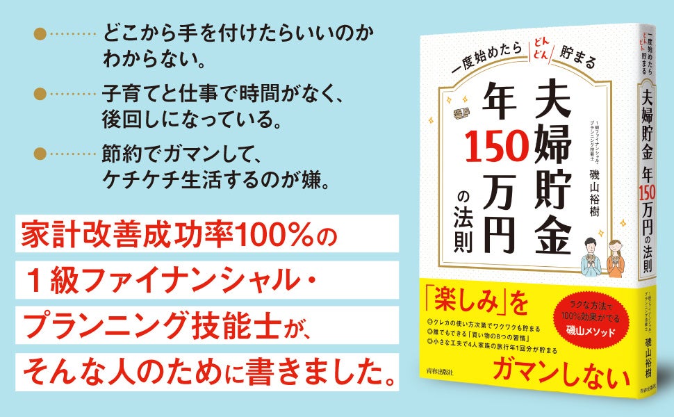 青春出版社(東京都・新宿区)は『一度始めたらどんどん貯まる 夫婦貯金 年150万円の法則』(磯山裕樹/著)を1月8日に発売いたしました。