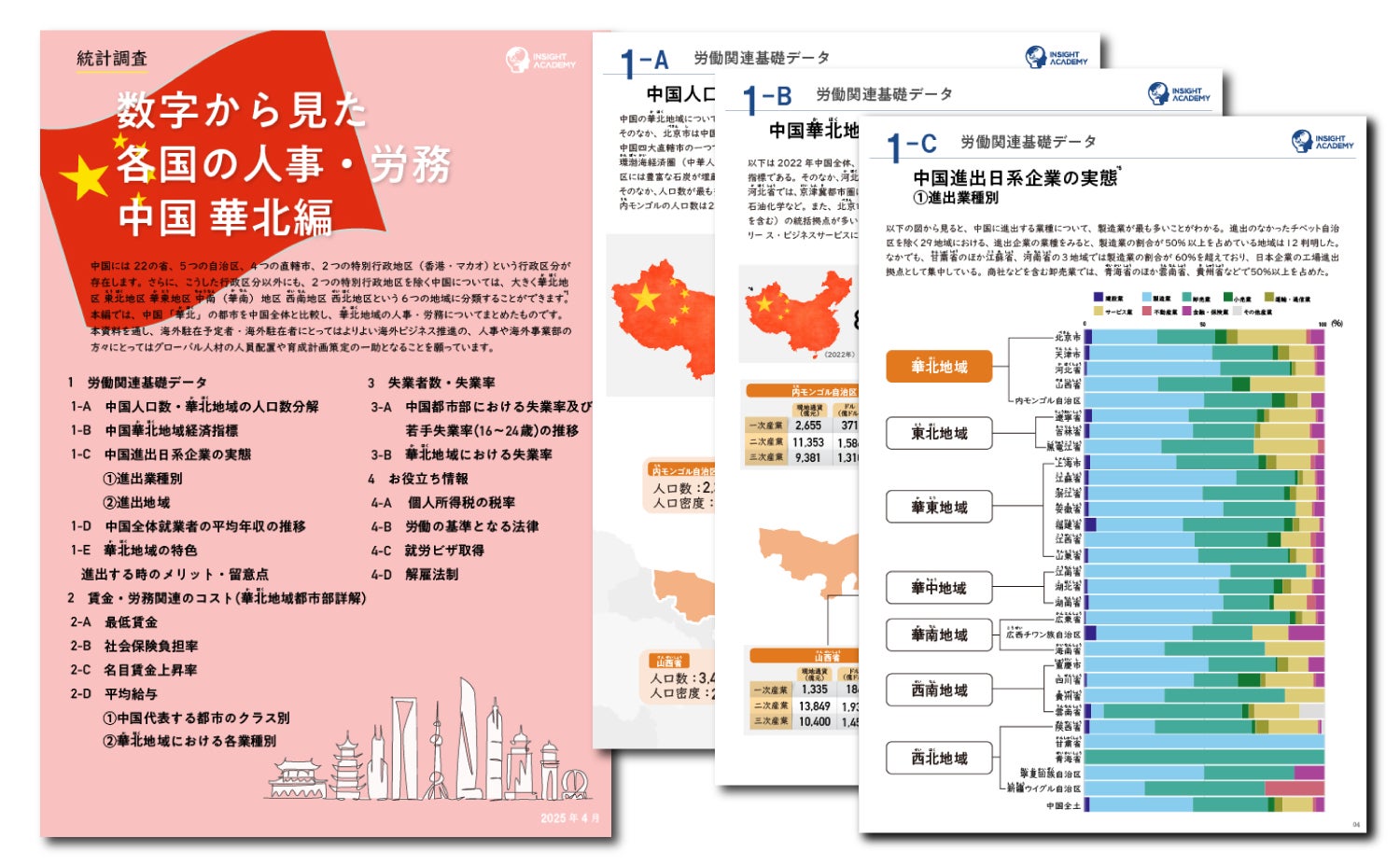 グローバル人材育成・研修業を手掛けるインサイトアカデミー株式会社(本社:東京都港区新橋、代表取締役:金 珍燮)は、グローバル人材育成ご担当者様向けのお役立ち資料「数字から見た各国の人事・労務 中国 華北編」を無料公開しました。