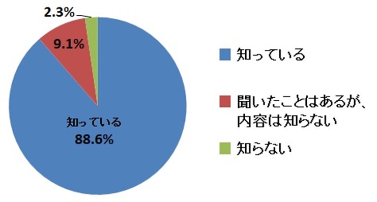 回答者の88.6%が「フードロス(食品ロス)」という言葉を知っています。「内容は知らないが聞いたことがある」(9.1%)を加えると97.7%の高率になります。
