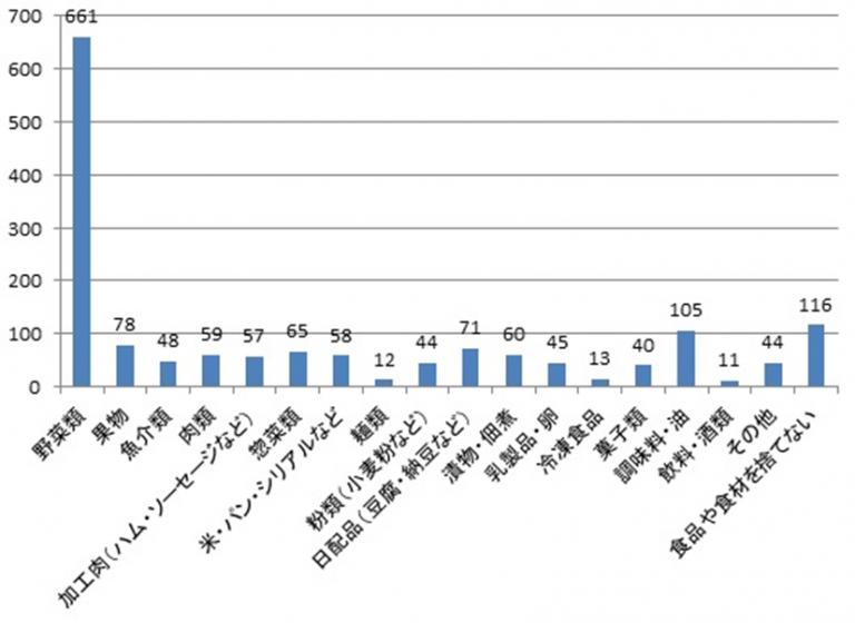 - 捨ててしまいがちな食品・食材のトップは野菜類