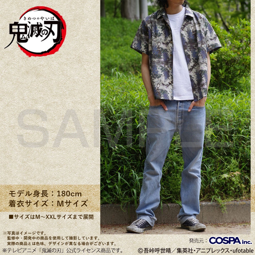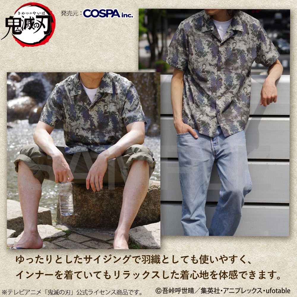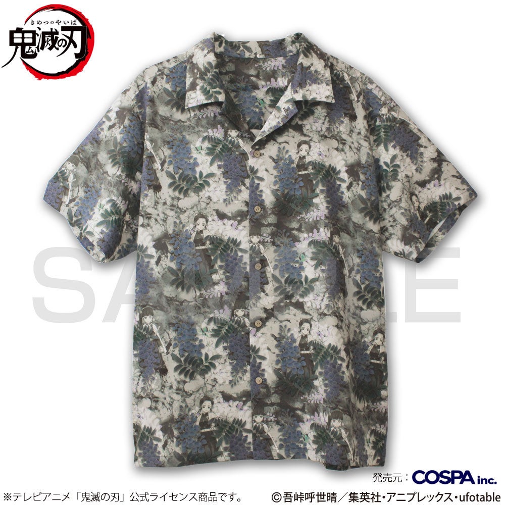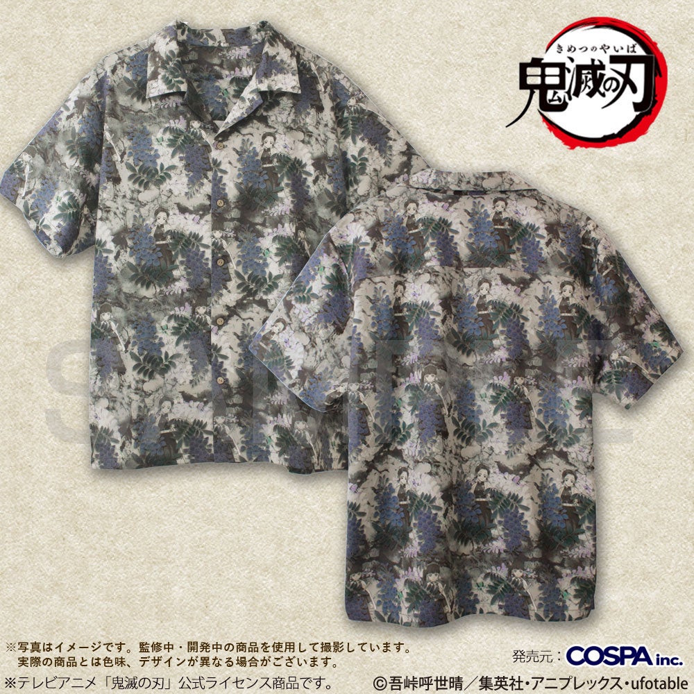 ・数量限定100着!藤の花のオリエンタルなパターンの中に『しのぶ』と『カナヲ』を散りばめた、総柄パターンのアロハシャツ!