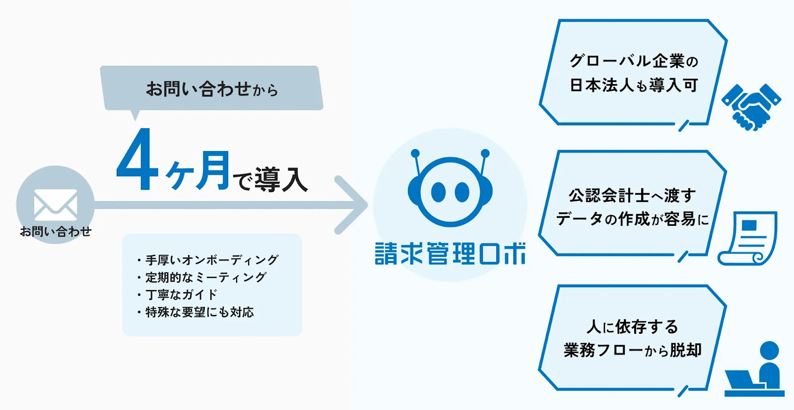 今後の事業成長を見据え、マンパワーに依存する現状の業務フローをシステム化し、事業拡大を支える経理体制の構築手段として、請求業務を自動化できる請求管理ロボを導入いただきました。