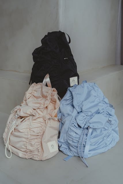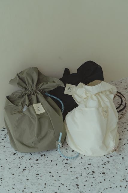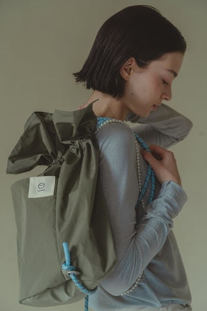 コロンとしたフォルムがかわいらしい巾着バッグ。