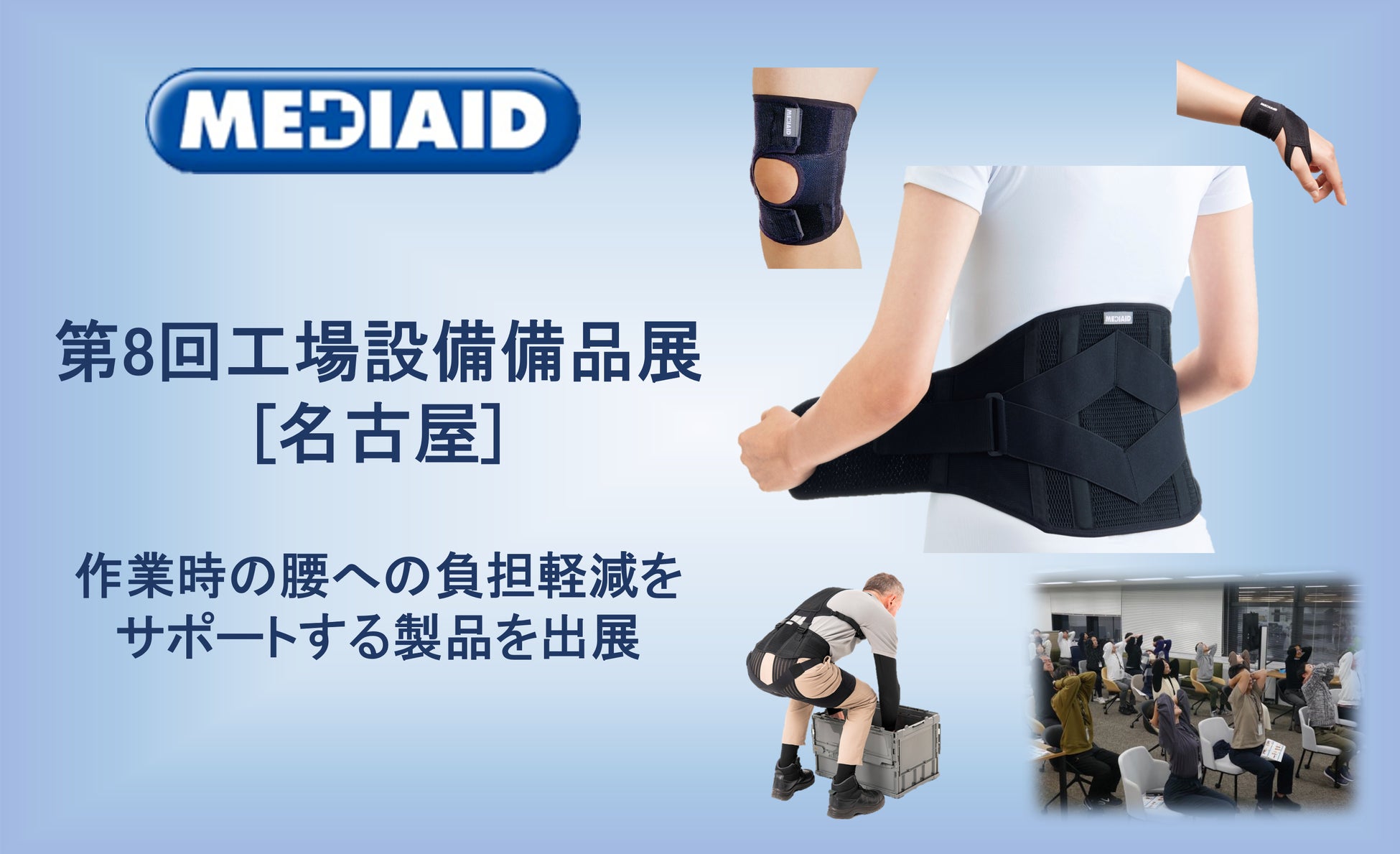 当社の医療現場で培われたノウハウを詰め込んだMEDIAID(メディエイド)各製品のご使用を通して、多くの方の労働時の身体をアシストするべく、「第8回工場設備・備品展[名古屋]」へ出展する運びとなりました。