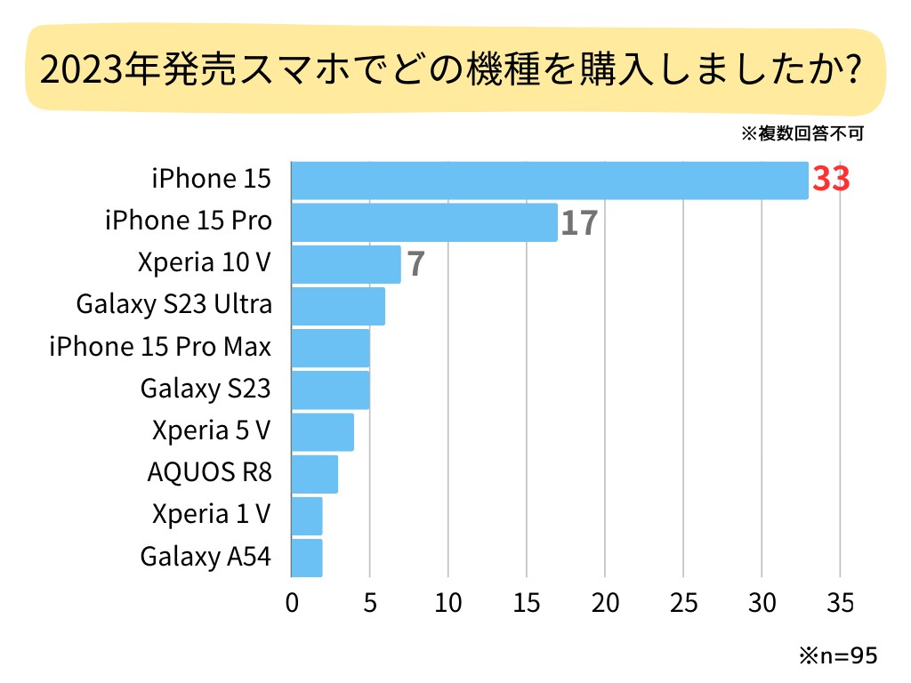 2023年発売のスマホを購入した方に「何を購入したか教えてください」と聞いたところ、下記の結果となりました。