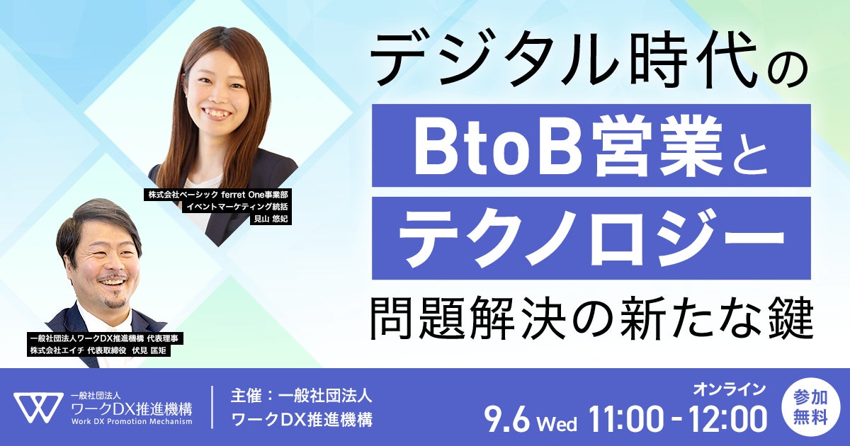 ベーシック、9/6(水)11:00より一般社団法人ワークDX推進機構主催のセミナー「デジタル時代のBtoB営業とテクノロジー」に登壇