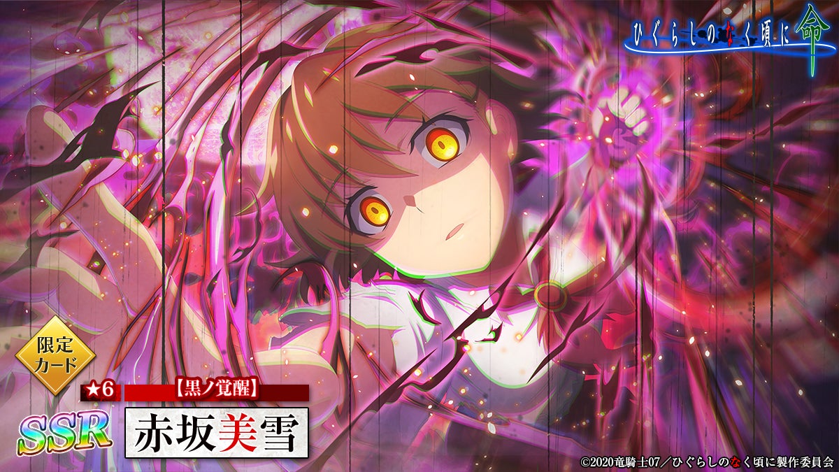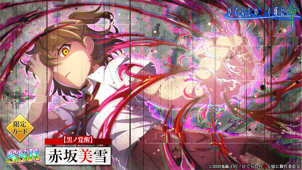 スマートフォンゲーム「ひぐらしのなく頃に 命」にて【黒ノ覚醒ガチャ】を開催!『【黒ノ覚醒】赤坂美雪』『【黒ノ覚醒】園崎魅音』が初登場!!
