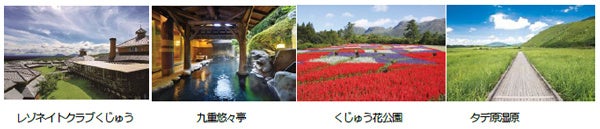 宿泊は、阿蘇・くじゅう国立公園内にある“レゾネイトクラブくじゅう”と、筋湯温泉“九重悠々亭”を用意し、参加者のみなさまにゆったりとお過ごしいただきます。また、自然散策ウォーキングや、くじゅう花公園、タデ原湿原、龍門の滝、ガンジー牧場の観光により九重町の豊かな自然や温泉、地元の方々とのふれあいを堪能いただきます。