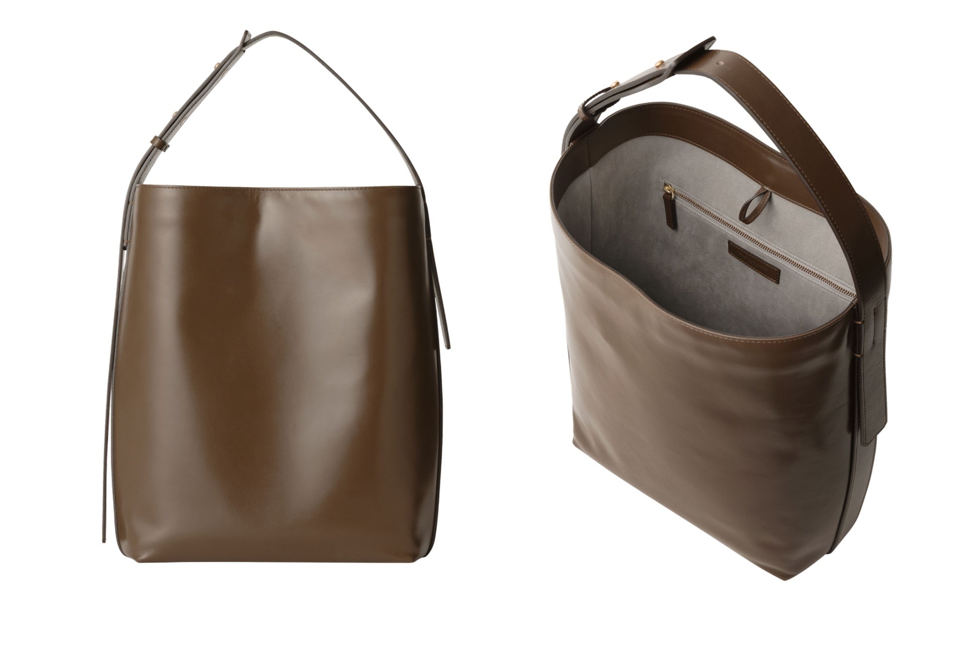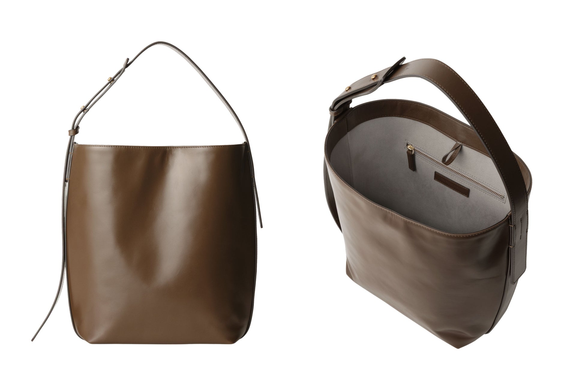 内装には「ライトグレー」色、ステッチには革と同系色の「シガーブラウン」色を採用することで、大人の女性にマッチする上品な印象に。金具とファスナーには「ゴールド」色を配し、落ち着いた印象のなかに華やかさも感じられるカラーリングとなっています。