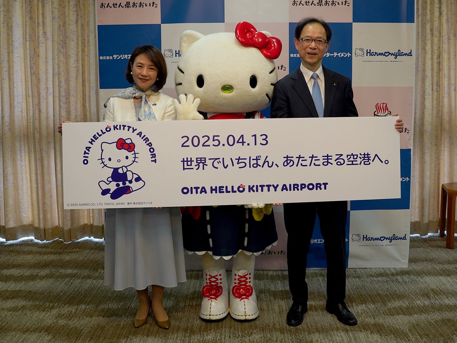 大分県とハーモニーランドを運営するサンリオエンターテイメント万博開催にあわせ観光キャンペーン発表4月13日『大分ハローキティ空港』開港