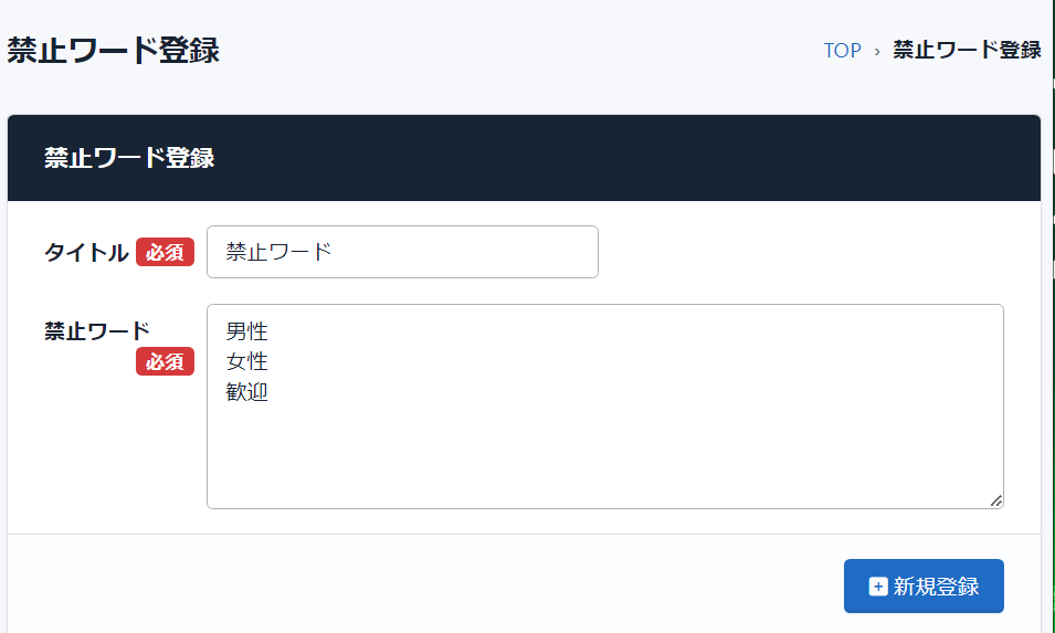 ※禁止ワード登録画面イメージ