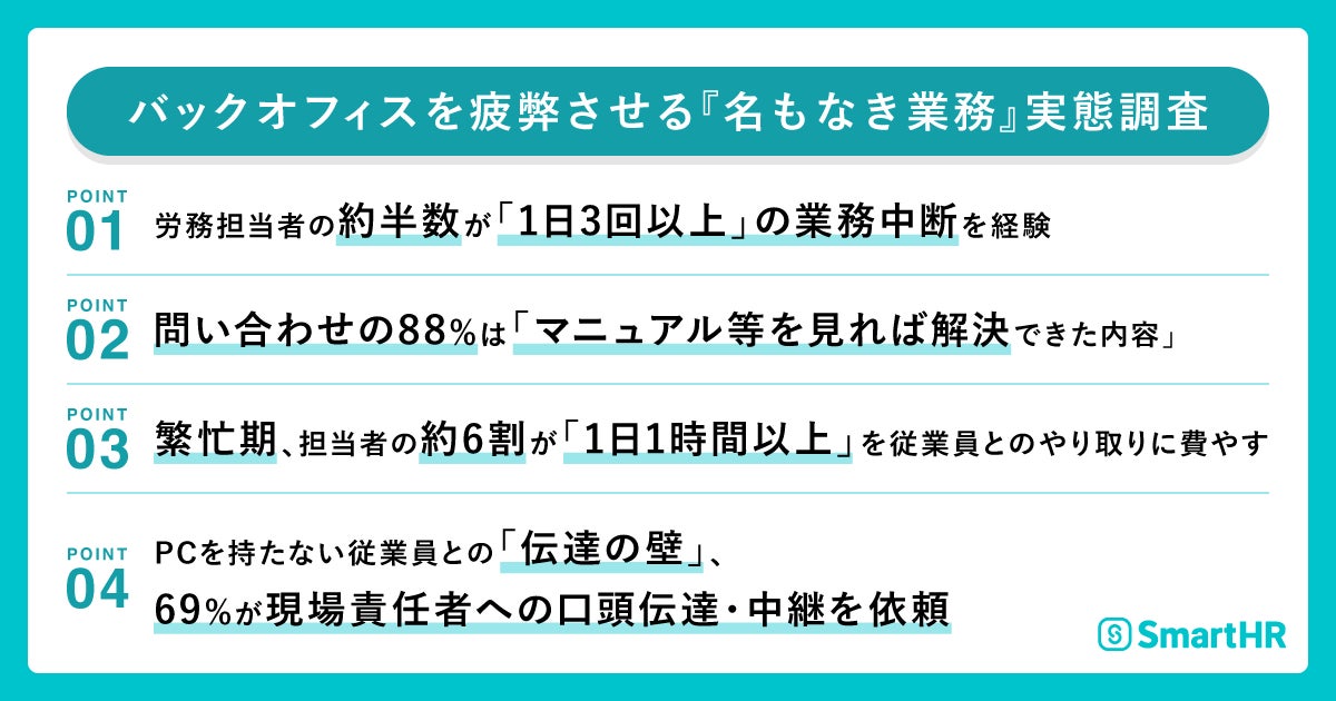 【バックオフィスを疲弊させる『名もなき業務』実態調査】 労務担当者の約半数が「1日3回以上」の業務中断を経験。従業員とのやり取り・確認・督促で生まれる「見えない非効率」