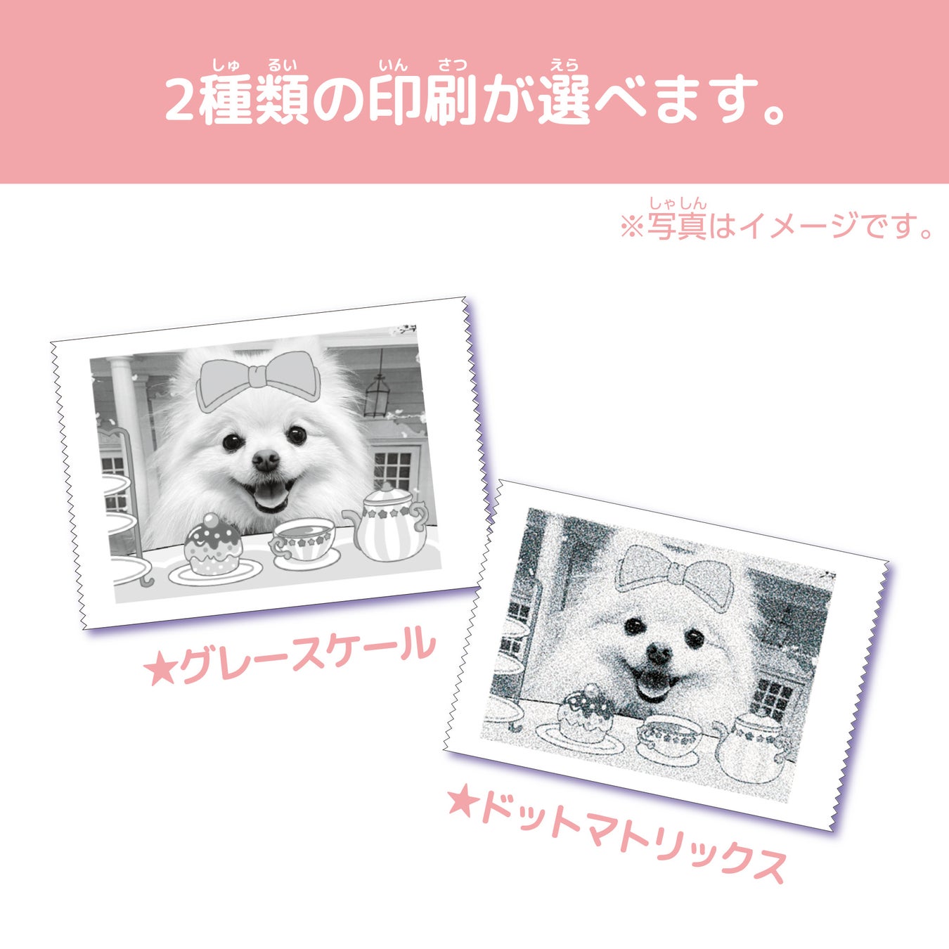 また、microSDカード(別売)を挿入することで、動画撮影やカラーデータの写真保存が可能です。外部へデータを出力すれば、カラー写真としての印刷にも対応し、さまざまな形で思い出を残すことができます。