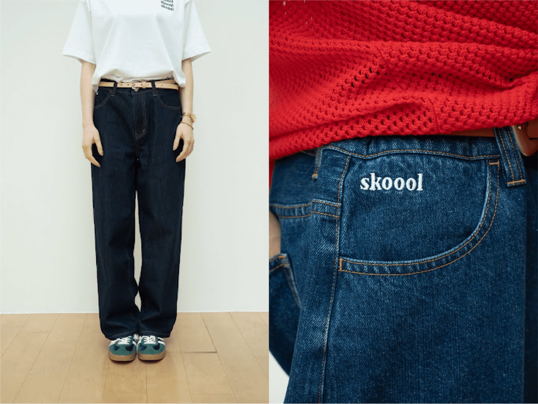 skooolの語源は海外のスラングskoolからきていて、「古くからある魅力的なもの」というような意味があります。ファッションもなんでもそうですが、この世は古くからある魅力的なものが残って新たな要素が追加されて今のものを造り出しています。昔から愛されている、古くからある魅力的なものに1つ自分のアイデアをプラスするという意味でoを一つ足しました。