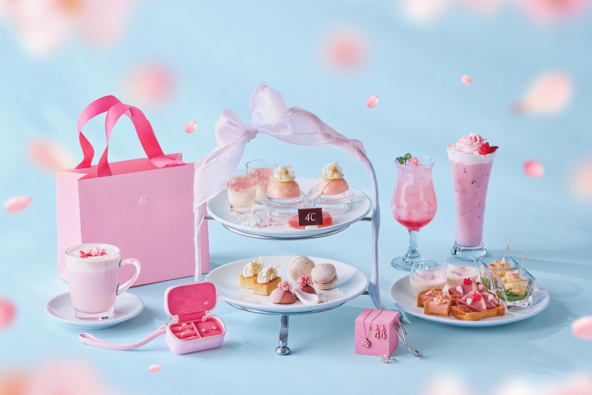 株式会社エフ・ディ・シィ・プロダクツ(所在:東京都品川区 代表取締役社長:岡藤 一朗)が運営するジュエリーブランド4℃は、アニヴェルセル株式会社が運営する「アニヴェルセルカフェ みなとみらい横浜」とコラボレーションし、2026年2月6日(金)〜4月30日(木)の期間限定フェア『SAKURA Sweets Collection』を開催。
