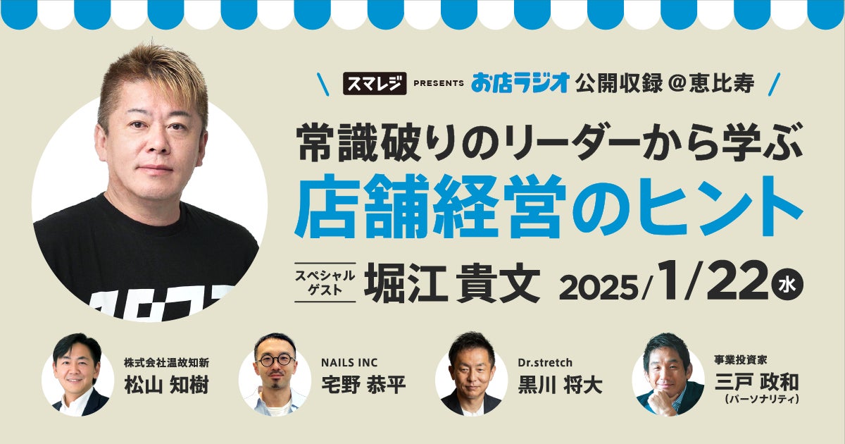 『お店ラジオ supported by スマレジ』は、前回ご好評いただいた公開収録イベントの第2弾を1月22日(水)13時より恵比寿にて開催します。