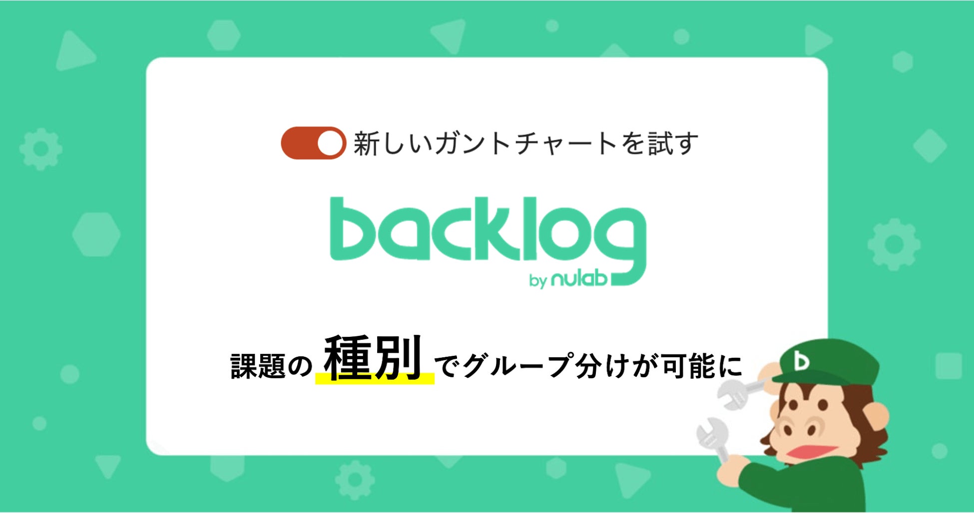 株式会社ヌーラボ(本社:福岡県福岡市、代表取締役:橋本正徳、以下 ヌーラボ)が提供しているプロジェクト・タスク管理ツールの「Backlog」は、ガントチャート機能の改善の一環として、「種別」によってガントチャート画面上に表示する課題をグルーピングすることが可能になりました。