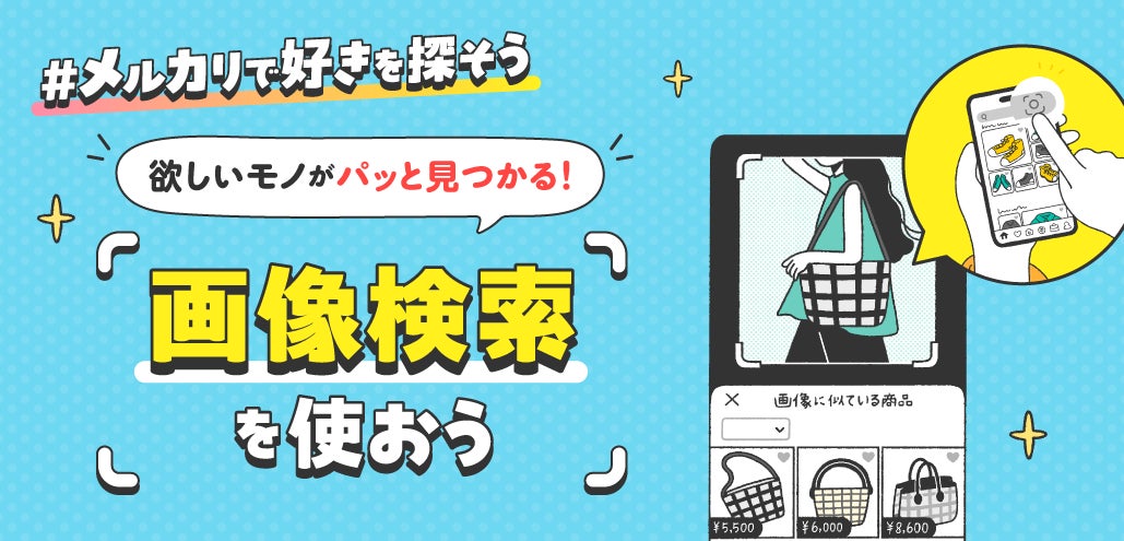 「メルカリ」では、自分で撮影した写真や保存している画像を使って、メルカリ内で商品を探せる「画像検索」機能を追加しました。この商品を探したいけれど名前がわからない時や、画像と色や形が似ているものを探したいときに便利な機能です。