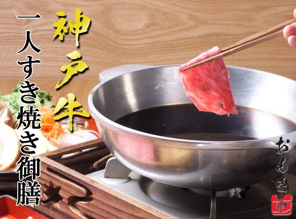 『神戸牛会席 おもき離れ 銀座店』では、2022年1月24日~2月13日までの期間、神戸牛一人すき焼き御膳を期間限定価格3980円でご案内いたします。