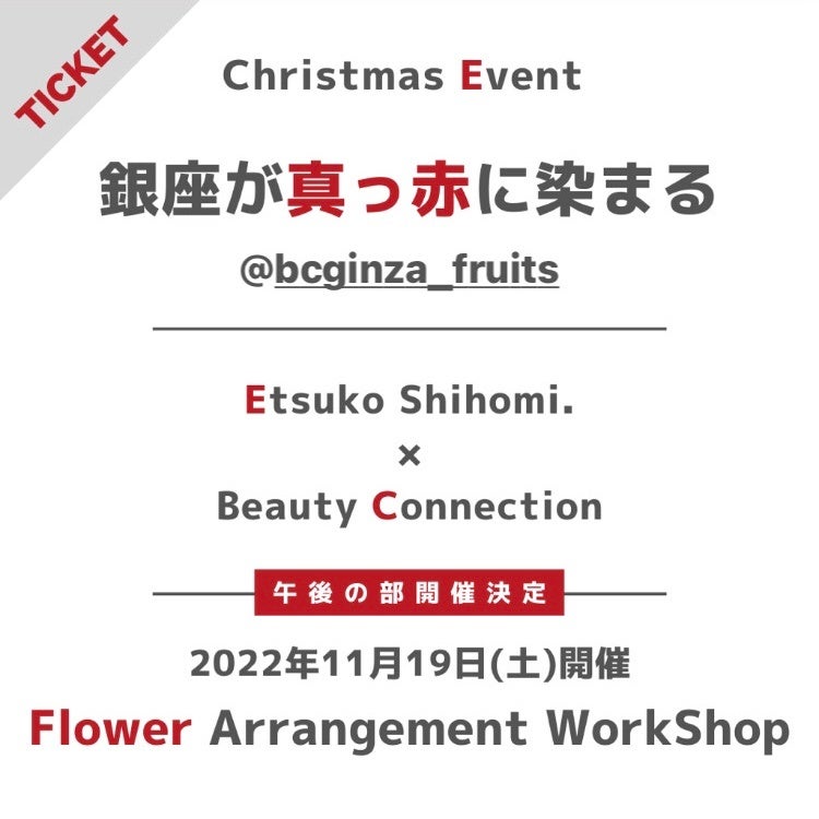【満員御礼】午後の部、開催決定!!「花創作家の志穂美悦子さん× Beauty Connection クリスマスリース 2022 in Ginza 」2022年11月19日。ドレスコードは「レッド」。