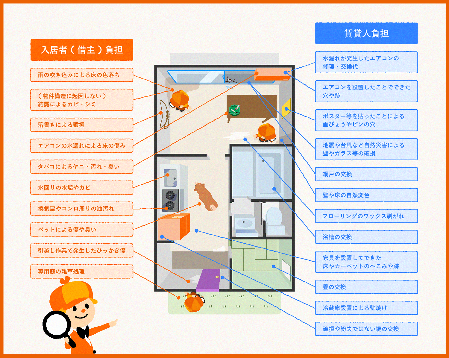 ※費用負担は契約内容によって変わる可能性があります。賃貸契約時・退去時には必ず契約書をご確認ください。