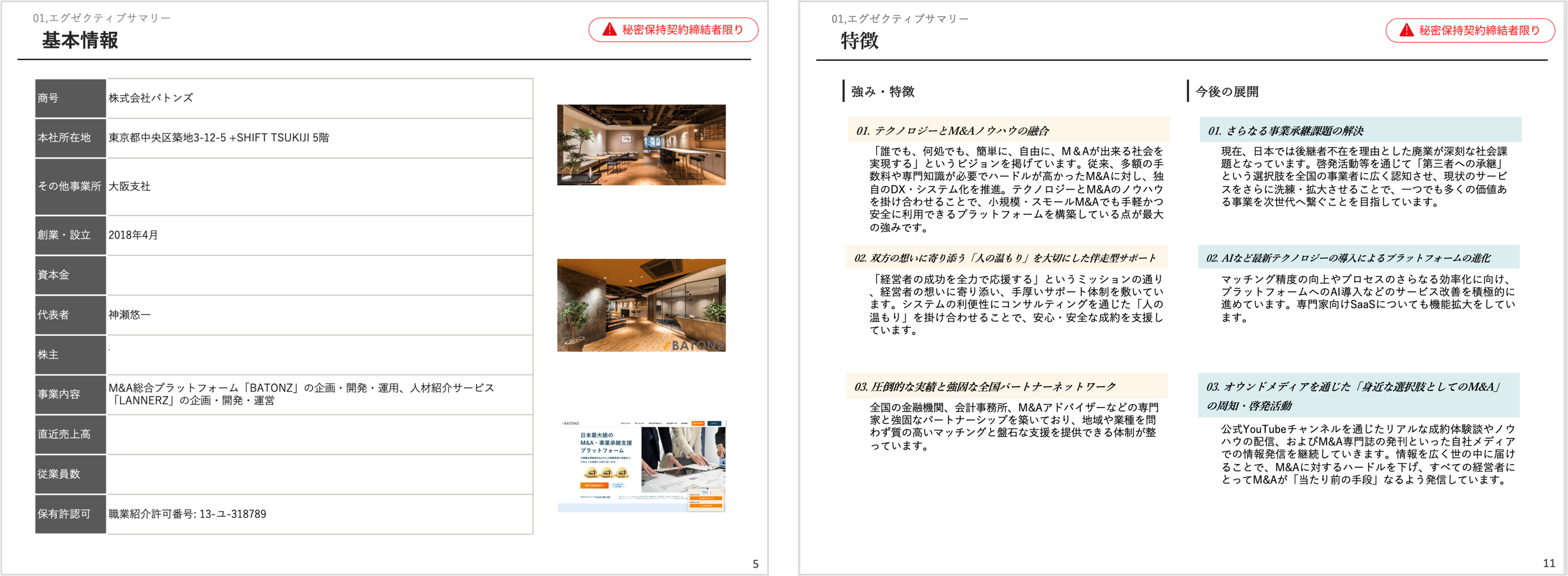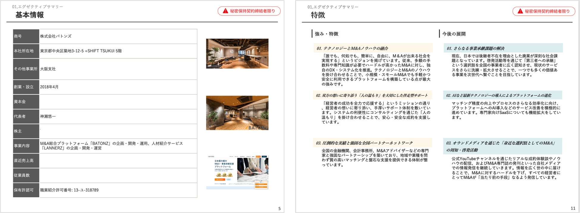事業内容 : M&A総合プラットフォーム「BATONZ(バトンズ)」の企画・開発・運用