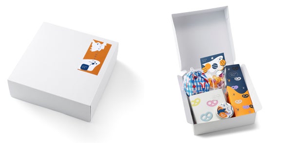 ハロウィン限定のブルーベリー味と、オレンジ味、グレープ味の3種のアソートで、「グミッツェルくん」とおばけがあしらわれたパッケージがハロウィンシーンを盛り上げます。ハロウィンイベント用のお菓子にはもちろん、化粧箱入りでそのままギフトとしてもお使いいただけるので、大人数向けの贈り物にもおすすめの商品です。