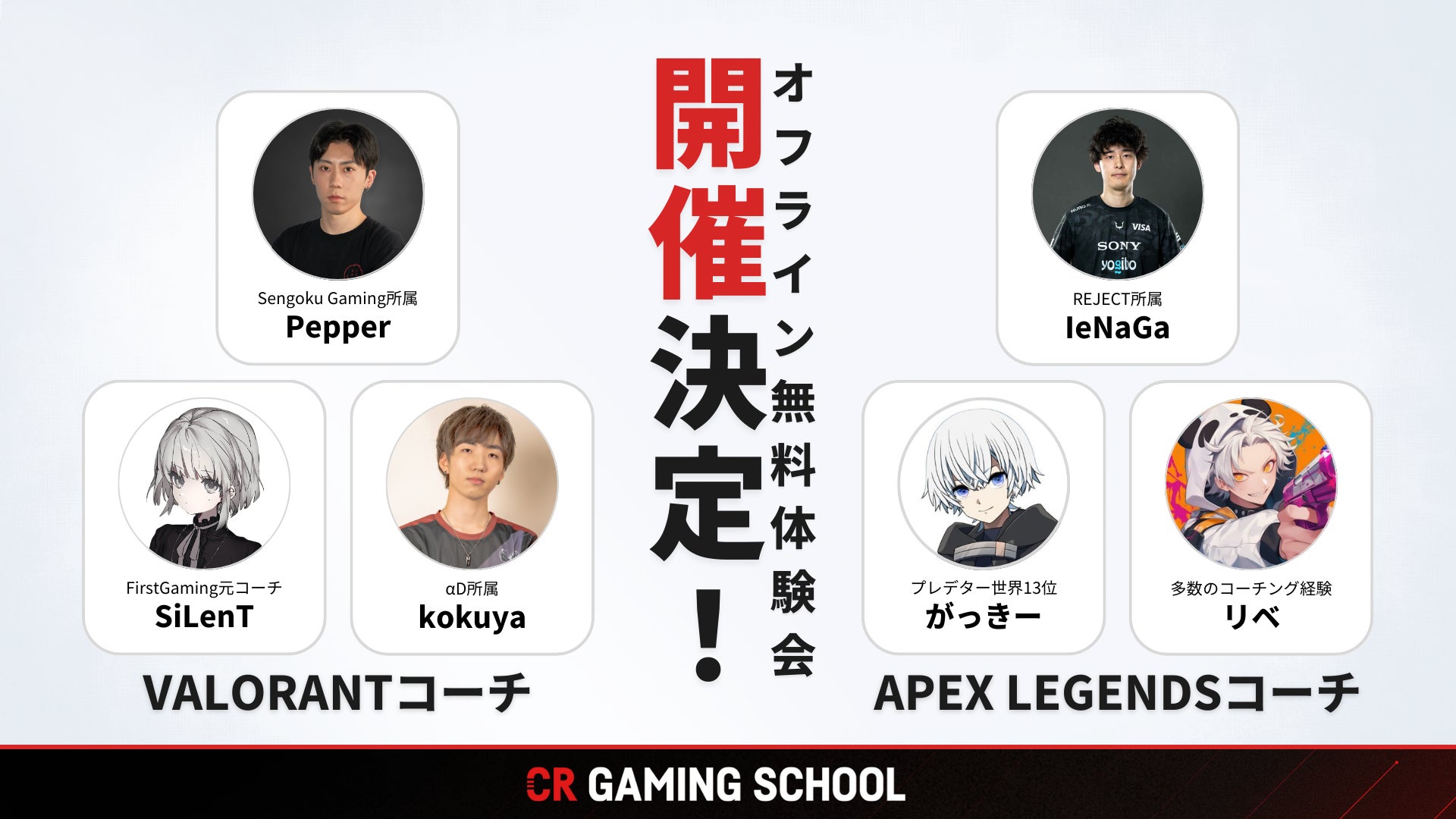 最強のAIMを手に入れろ!『CR Gaming School』コーチング無料体験会を渋谷で開催。VALORANTとApex Legendsの2タイトルから選択可能