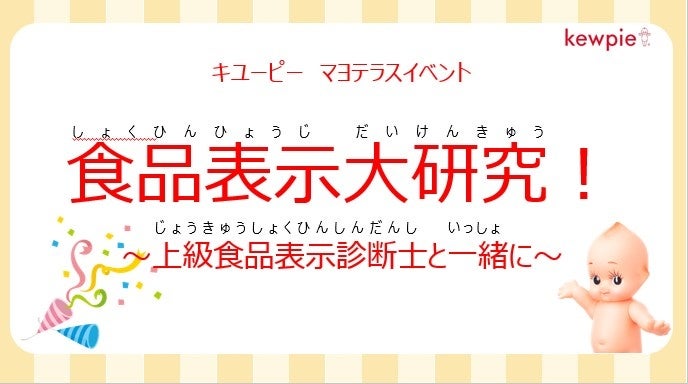 昨夏にオンラインで実施し好評を得た企画を今年は対面で開催します。マヨテラス見学後に上級食品表示診断士※の資格を持つキユーピーの従業員が身近な食品の裏面表示についてクイズを交えながら解説します。自分の目で食品を選ぶきっかけづくりになる内容で、今年のテーマは「期限表示と保存方法」です。
