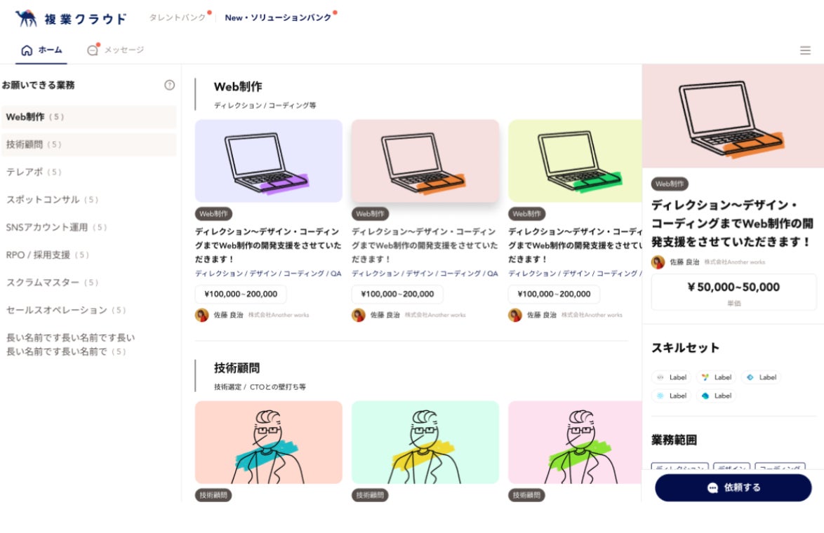 求人やスカウトが不要に!? 個人の”得意”を買うだけ、より複業依頼がしやすくなる新サービスを開始