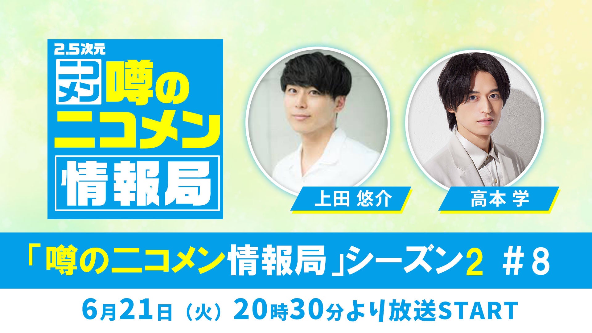 【上田悠介&高本学 生出演決定】ニコ生「噂の二コメン情報局」第8回目放送日発表!番組観覧ができる特賞アリ!オンラインくじも開催決定