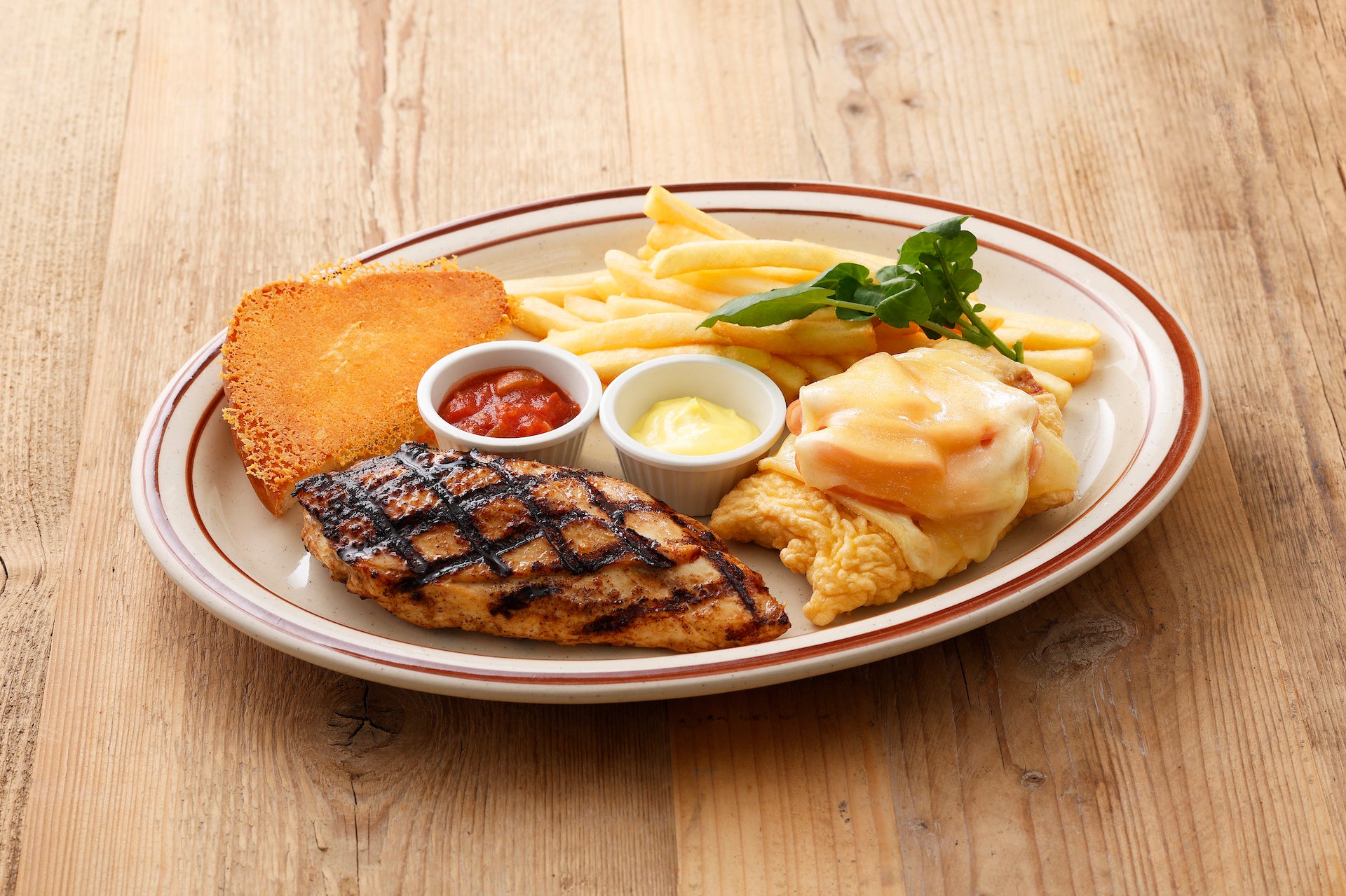 “九州産みつせ鶏”や“豪州産リブロースステーキ”を使用し、「サンタフェチキン&マリブチキン」「マリブチキン&ポップコーンシュリンプ」「リブロースステーキ&マリブチキン」の3品をご用意いたします。