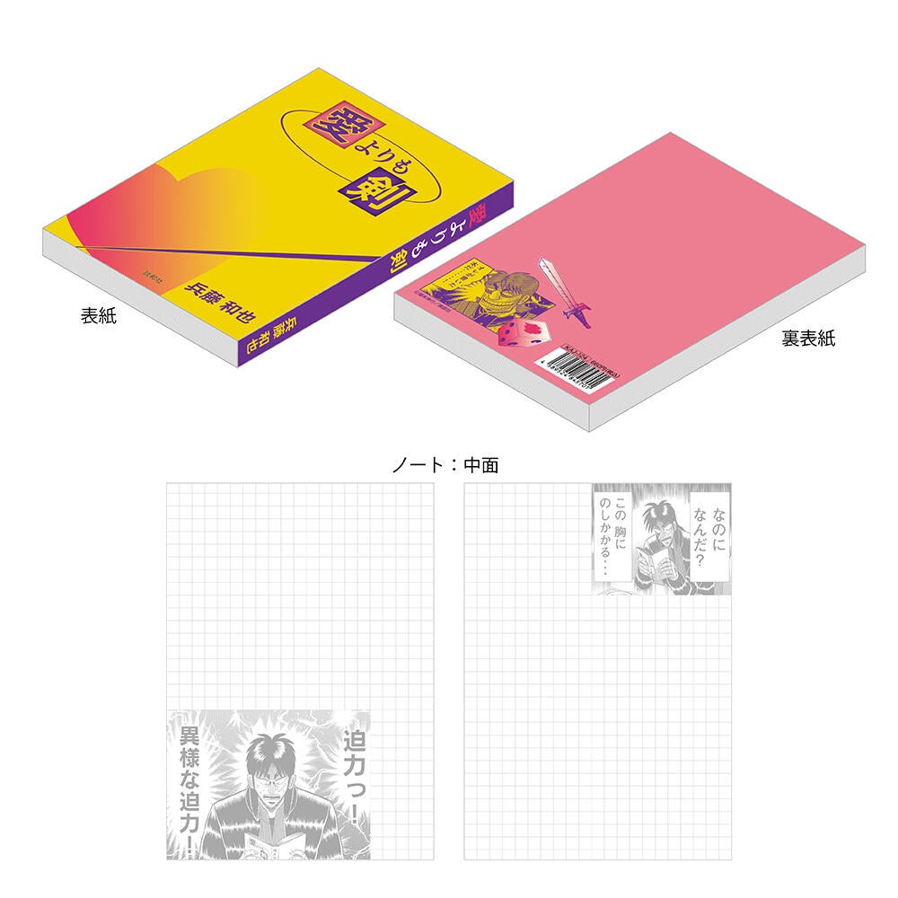 帝愛グループ兵藤会長の息子、兵藤和也が執筆した怪作「愛よりも剣」文庫本風のノートが登場!カイジも思わず夢中になってしまったその狂気の物語のように、このノートを開けば思わずあなたの心の中の本性を書き記してしまうかも知れない?