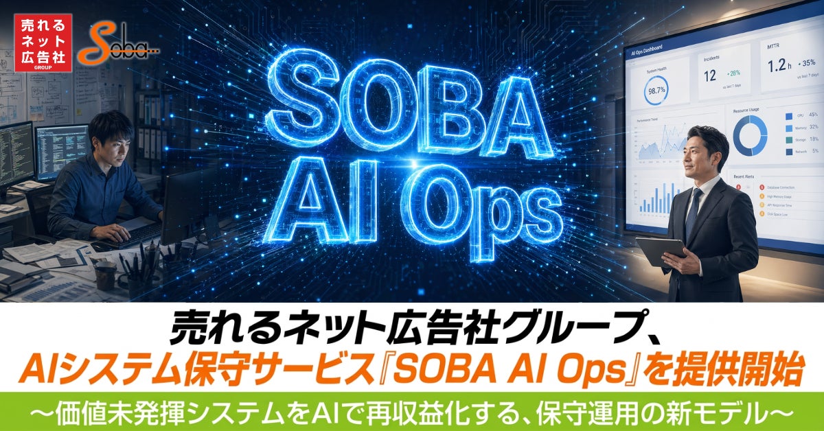 売れるネット広告社グループ(9235)、AIシステム保守サービス『SOBA AI Ops』を提供開始~価値未発揮システムをAIで再収益化する、保守運用の新モデル~