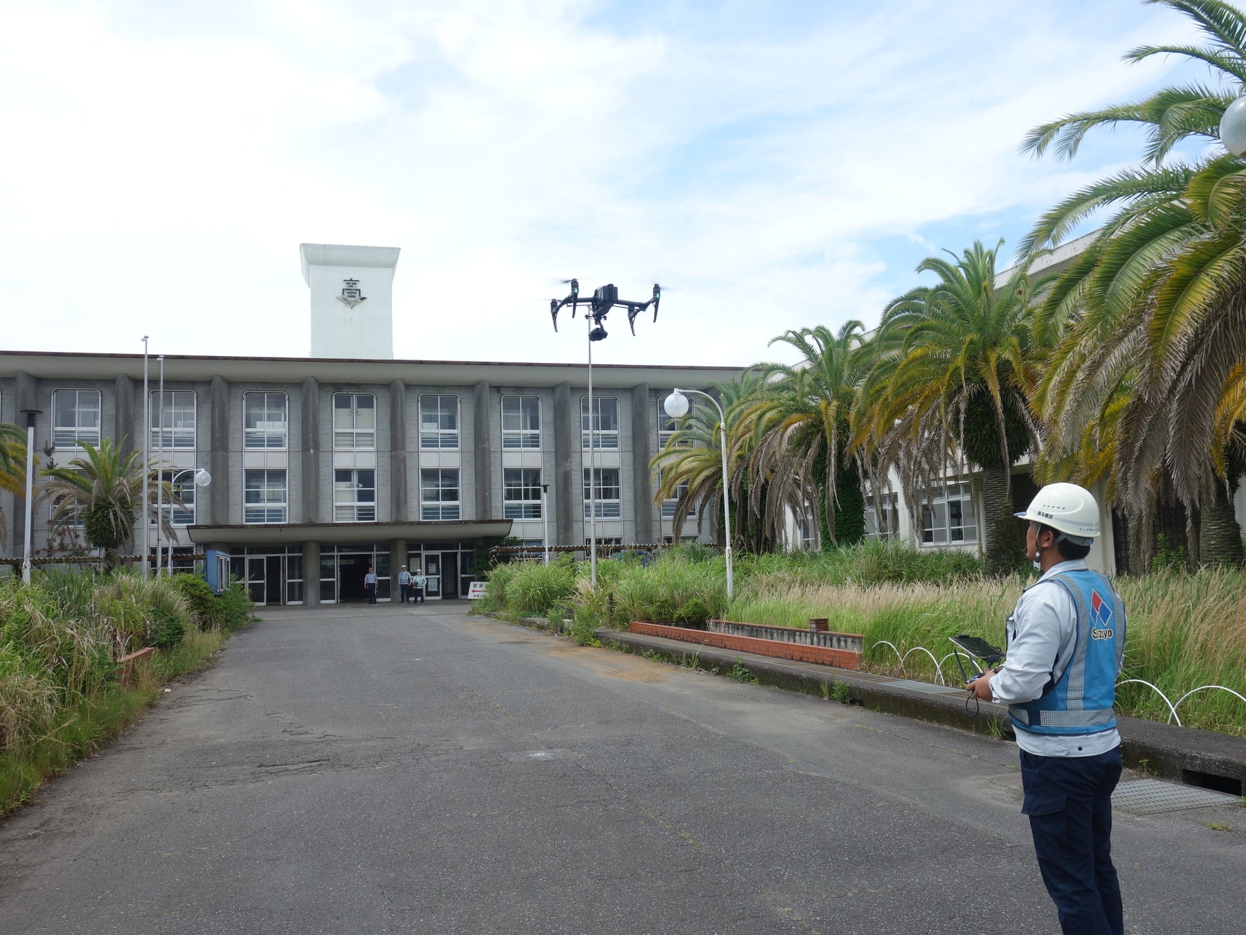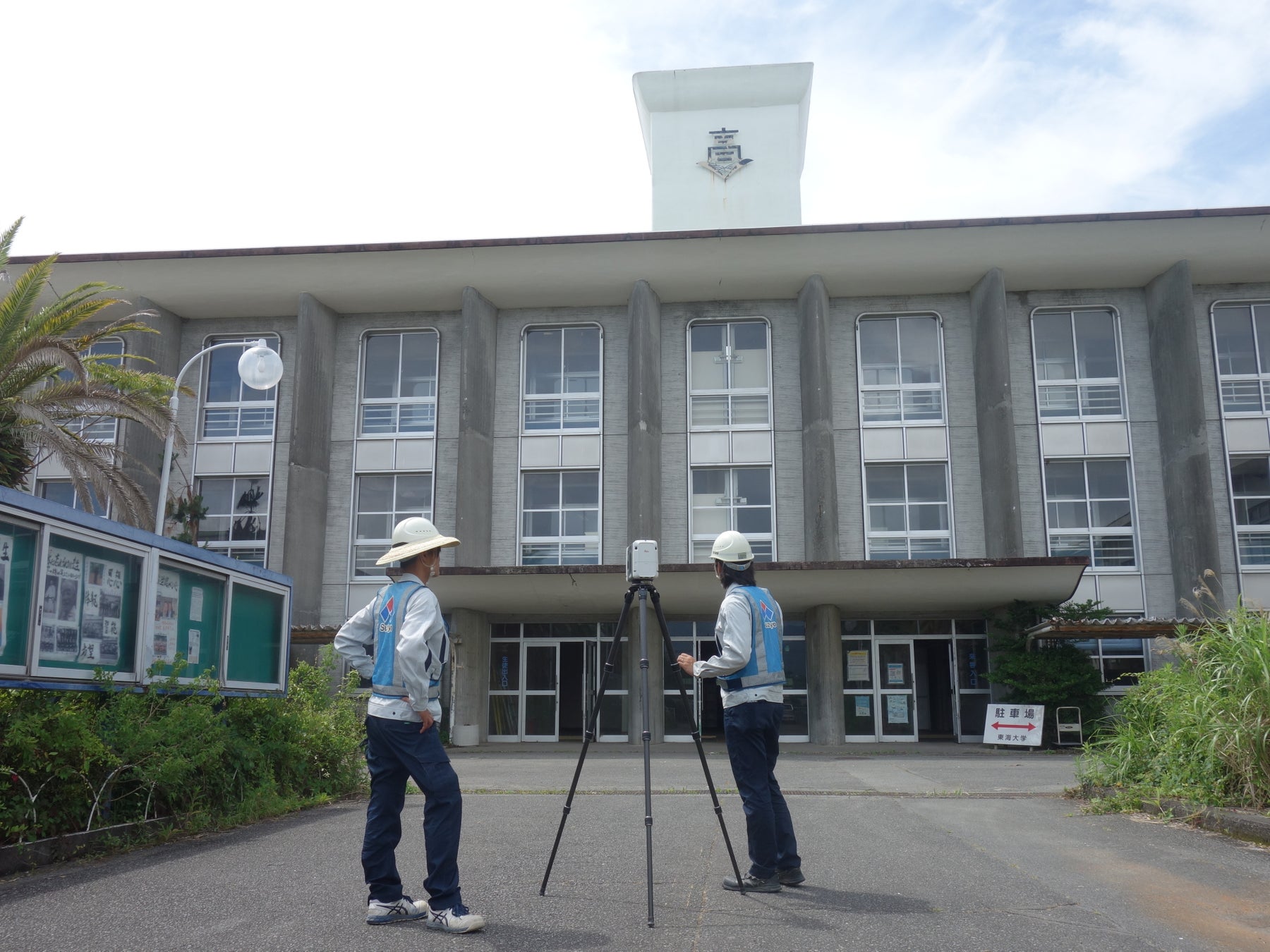 鈴与建設株式会社には多くの旧東海大学第一高等学校の卒業生が在籍しており、同窓会主催の「校舎への感謝とお別れ会」において、解体前の建物を後世に残すためのデジタルアーカイブ化を提案いたしました。鈴与建設株式会社土木工事部では、建設現場でのBIM/CIM活用を目的としたレーザースキャナーやドローンなどのICT機器を運用しており、その技術を活かした高精度なデジタル記録保存を実現することができました。