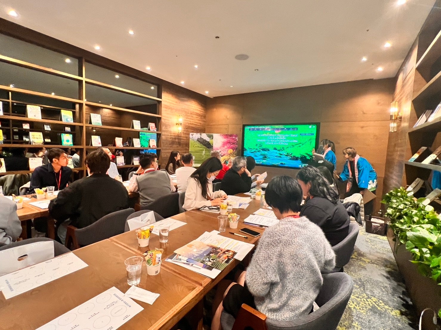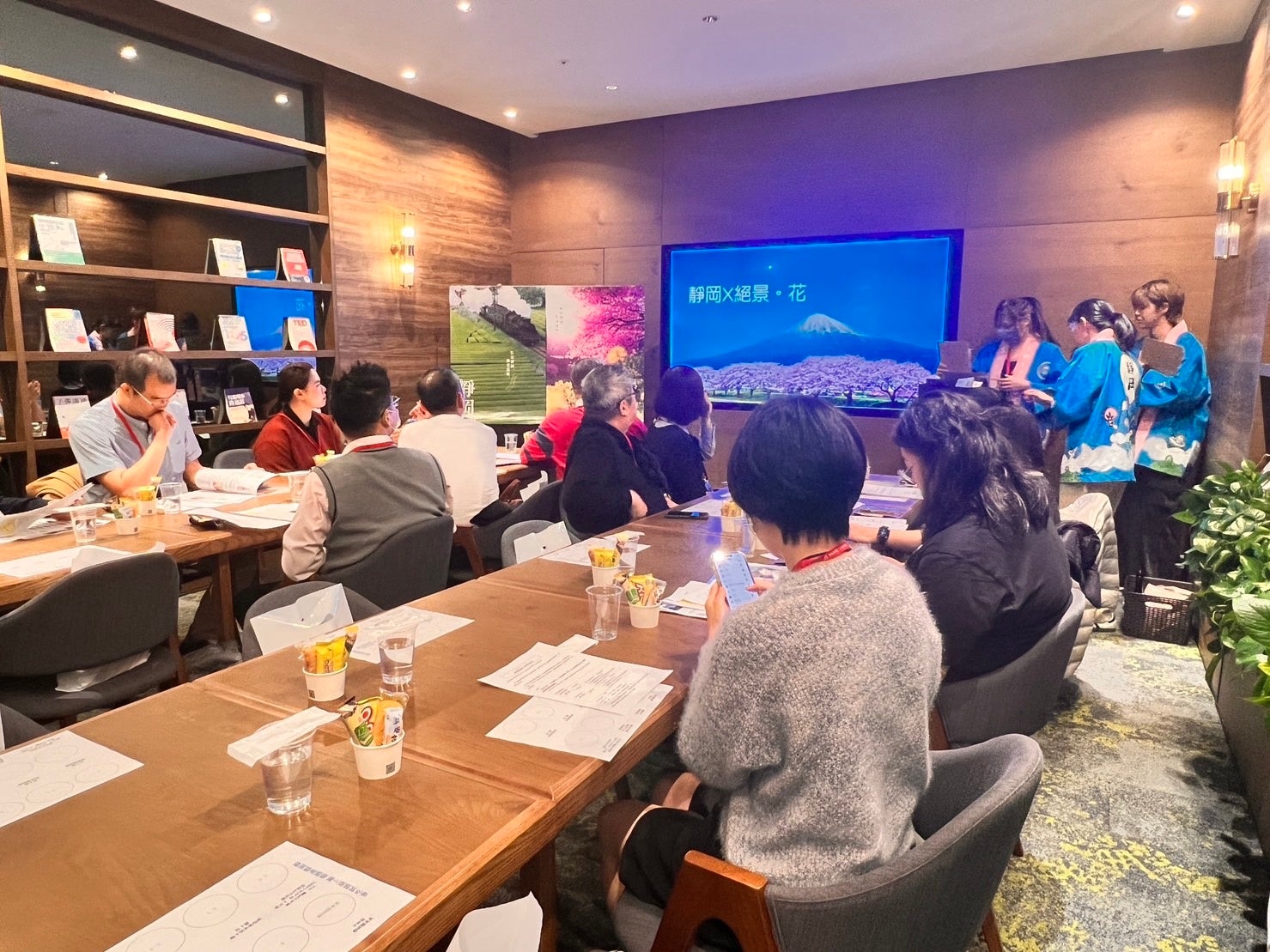 同イベントでは、静岡県の観光紹介に加え、静岡県の海外戦略5品目の1つである日本酒のほか、お茶リキュールやとうもろこし焼酎などの、静岡県産酒類のPRを行いました。静岡県内の生産者など5者がオンラインで参加し、台北市内の会場に集まったバイヤーやレストラン経営者など約20者に、商品の特徴などを説明しました。