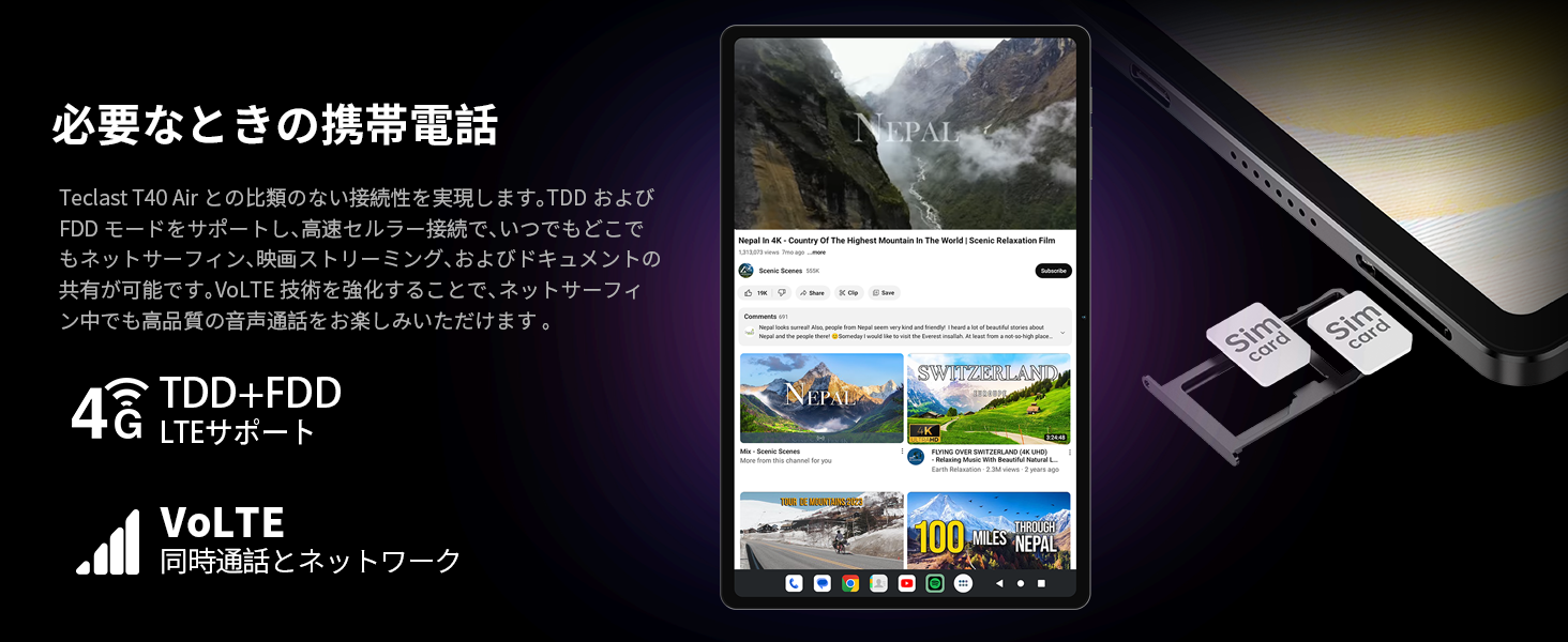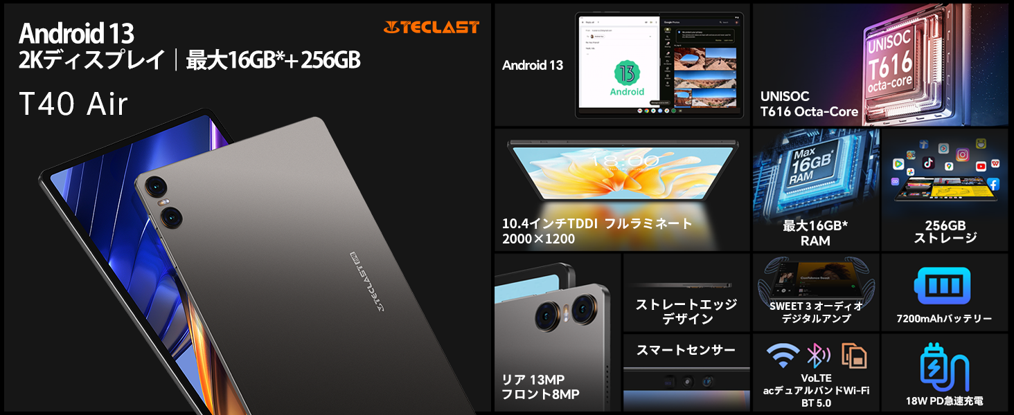10.4インチ / Android 13 / 16GB+256GB+1TB拡張 / Widevine L1対応 / 2K FHD IPSディスプレイ / 18W急速充電 / LTE+WIFIモデル / GPS機能サポート
